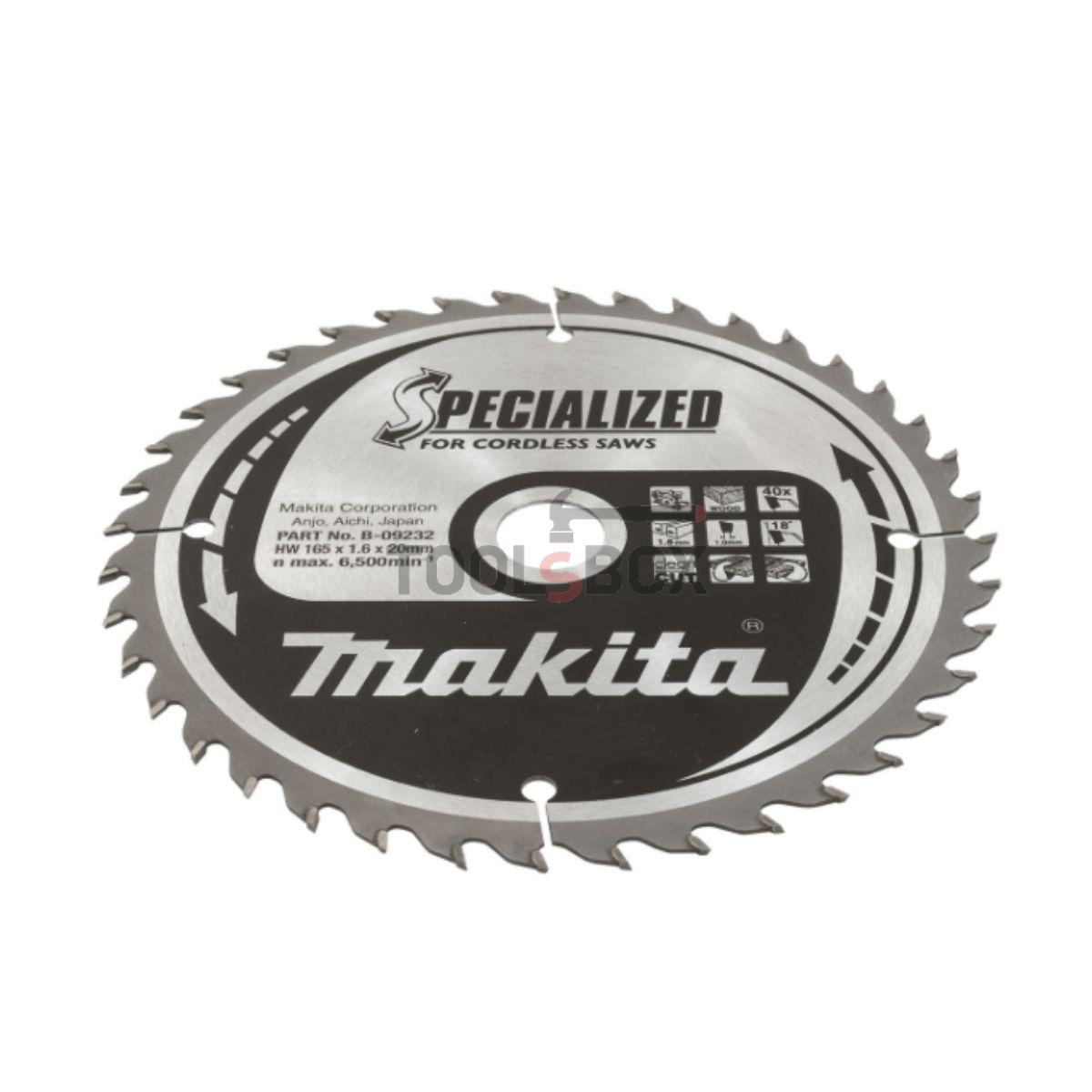 Дискът Specialized за дърво на Makita са изработени специално за преносими циркуляри, идеален за грубо рязане на дърво на строителната площадка. Първокласните дискове с 40 зъбци са направени специално за акумулаторни инструменти. Самите остриета са проектирани да бъдат ултра тънки и перфектно опънати за гладко движение.Доказано удължават живота на батерията. Произведени са така, че да имат шлифован висококачествен карбид за гладко рязане. Имат специфични конфигурации на зъбите, за да отговарят на специфични стандарти за рязане.