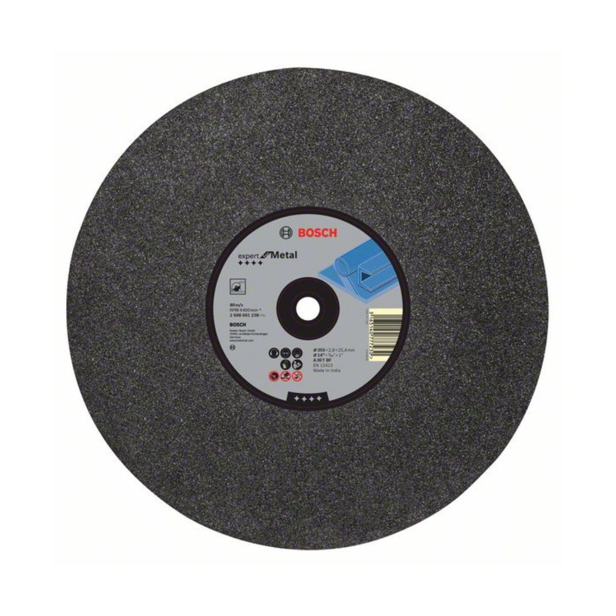 Диск за метал Bosch 2608601238 е изработен от висококачествен алуминиев оксид, гарантиращ бързо и чисто рязане. С диаметър 355 мм и е предназначен за обработка на метал. Диаметърът на вътрешния отвор е 25,4 мм, а дебелината е 2,8 мм. Спецификация: A 30 T BF. Дисковете за рязане Bosch съответстват на изискванията за максимална безопасност, като например EN 12413, FEPA и oSa.