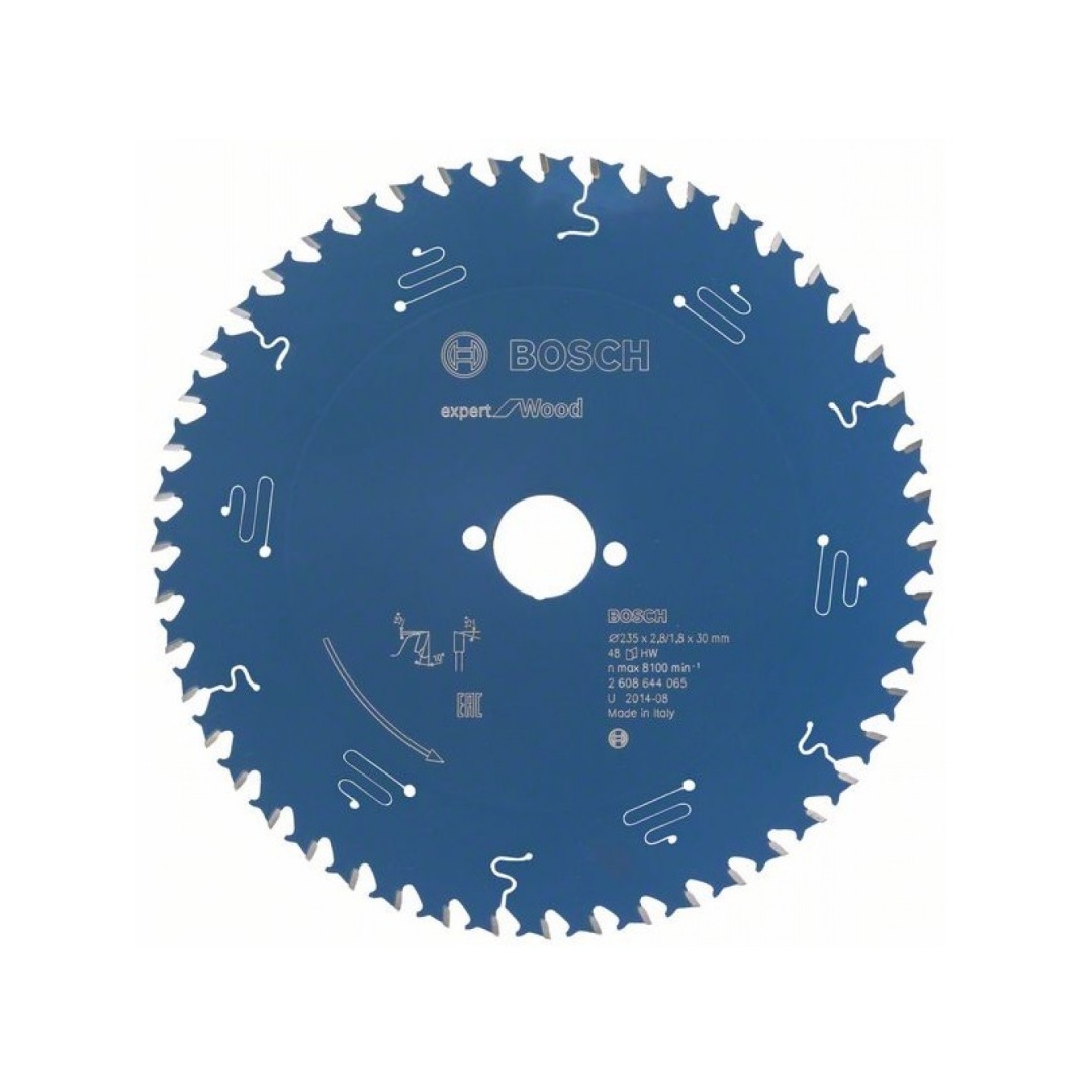 Диск за циркуляр Bosch 2608644065 е висококачествен и надежден избор за рязане на различни видове дървени материали като плоскости, мека и твърда дървесина, шперплат и MDF, което го прави подходящ за мебелната индустрия и дървообработващи предприятия. Диаметъра на диска е 235 мм с форма на зъбите АTB и 48 зъба, които осигурява високоскоростно рязане без натрупване на топлина и напрежение към острието.