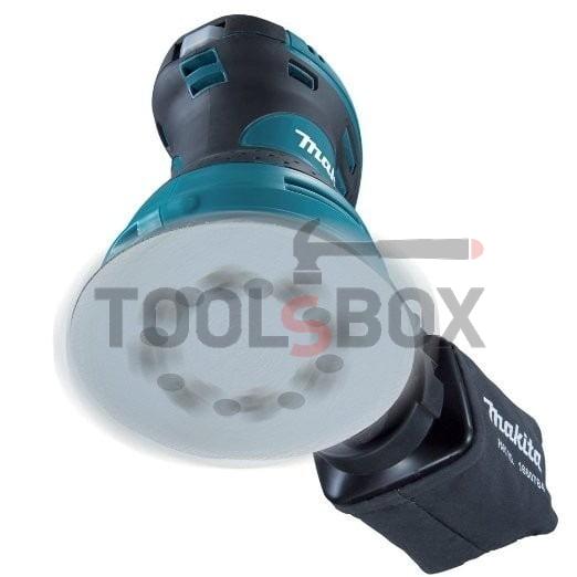Компактна ексцентрикова шлифовъчна машина Makita с мощност 300W. Захват на шкурката тип Велкро. Вибрационен кръг ф 2.8мм. Ефективно изсмукване на праха през основната плоча. Ексцентрицитет 1.4 мм. Размери на шкурката ф 123 мм. Ергономично оформен корпус с неплъзгаща се повърхност, защитен от прах ключ.
