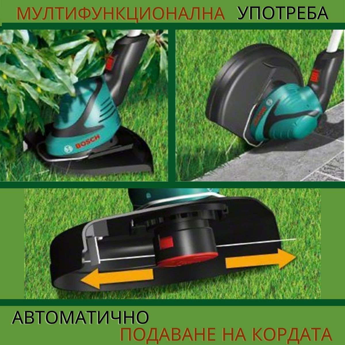 Електрически тример BOSCH ART 27 е изключително компактна и лека машина, с висока производителност на рязане. Снабден е със система за автоматично подаване на кордата, която намалява до минимум управлението на кордата. Удобната ръкохватка с меко покритие гарантира оптимален комфорт по време на работа. Дръжката се регулира по височина, само с един бутон. Bosch ART 27 има мощен и издържлив електромотор, за оптимални работни резултати. Косене в режим подрязване на ръбовете само с едно прещракване. Тримерът е с удобна телескопична дръжка, която се регулира от 80-115 см. Машината е със стабилна метална конструкция, а корпусът на двигателя се върти за по-прецизна работа. Предназначението на този модел тример е за косене около дървета, огради и стени. Издържлив е на падане върху твърда почва, и има в окомплектовката предпазна скоба за растения. Една от основните му функции е възможността за вертикално косене на ръбовете на 90°.