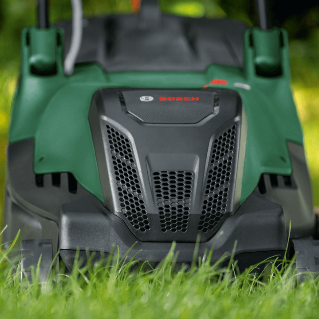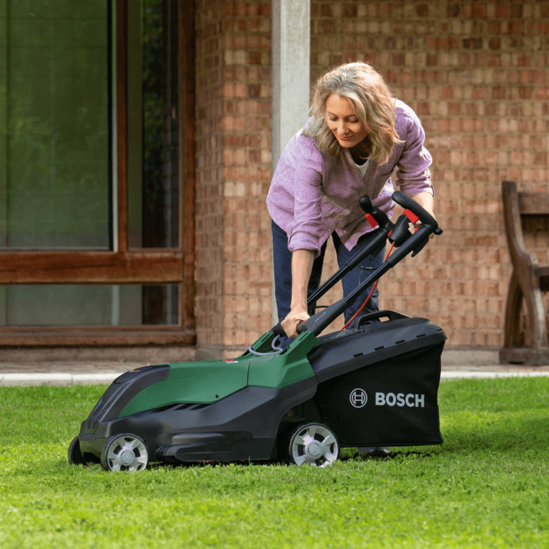 Електрическа косачка Bosch AdvancedRotak 44-750 за поддръжка на по-големи тревни площи, оборудвана с мотор с мощност 1800 W и работна ширина 44 cm. Моделът е предназначен за ефективно косене и събиране на окосената трева, като разполага с 50-литров текстилен кош и индикатор за запълване. Височината на рязане се настройва централно в 7 позиции в диапазон от 25 до 80 mm, което позволява адаптиране към различни условия на тревната площ. Конструкцията е разработена за по-удобно управление и по-лесно съхранение. Ръкохватките ErgoSlide подпомагат маневрирането по време на работа, а сгъваемият кош улеснява прибирането след употреба. Машината използва ротационен стоманен нож и е подходяща за потребители, които търсят кабелна косачка с добра производителност, чисто събиране и практични настройки за ежедневно градинско поддържане.