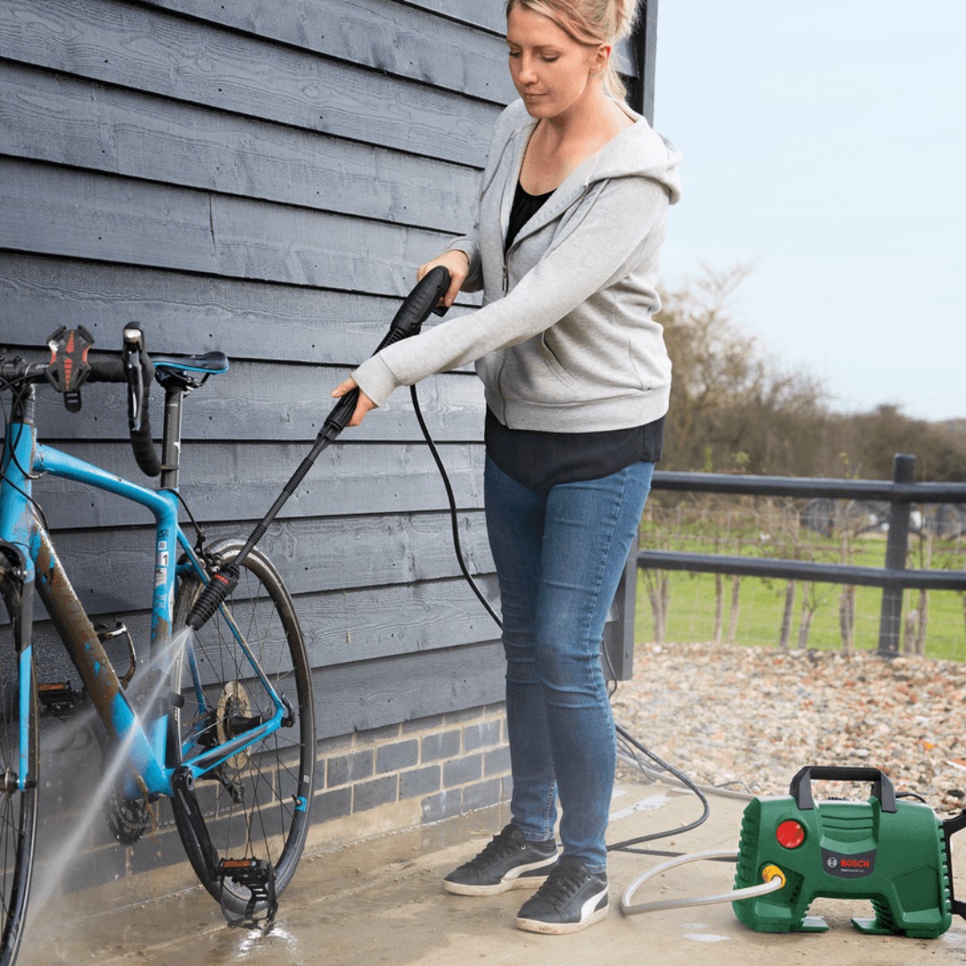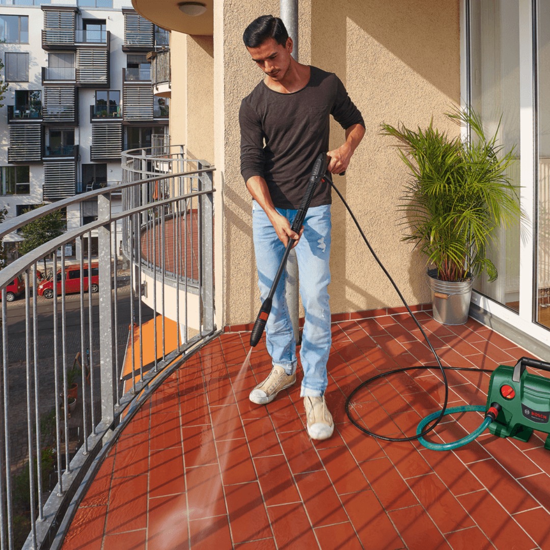 Електрическа водоструйка Bosch EasyAquatak 120 за бързо и удобно почистване на площи и предмети около дома. Моделът е създаден за леки до средни задачи като измиване на автомобил, тераса, градински мебели и други външни повърхности. Компактният корпус улеснява пренасянето и съхранението, а вграденото място за принадлежности помага всичко необходимо да бъде под ръка по време на работа. Машината работи с мотор с мощност 1500 W и осигурява максимално налягане 120 bar, като подава до 5.8 l/min вода. Оборудвана е с регулируема ветрилообразна дюза, ротационна дюза и дюза за препарат с вместимост 450 ml, което позволява по-добро адаптиране към различни видове замърсявания. Системата с push-fit връзки и възможността за удобно съхранение на пистолета по време на работа допринасят за по-лесна употреба.
