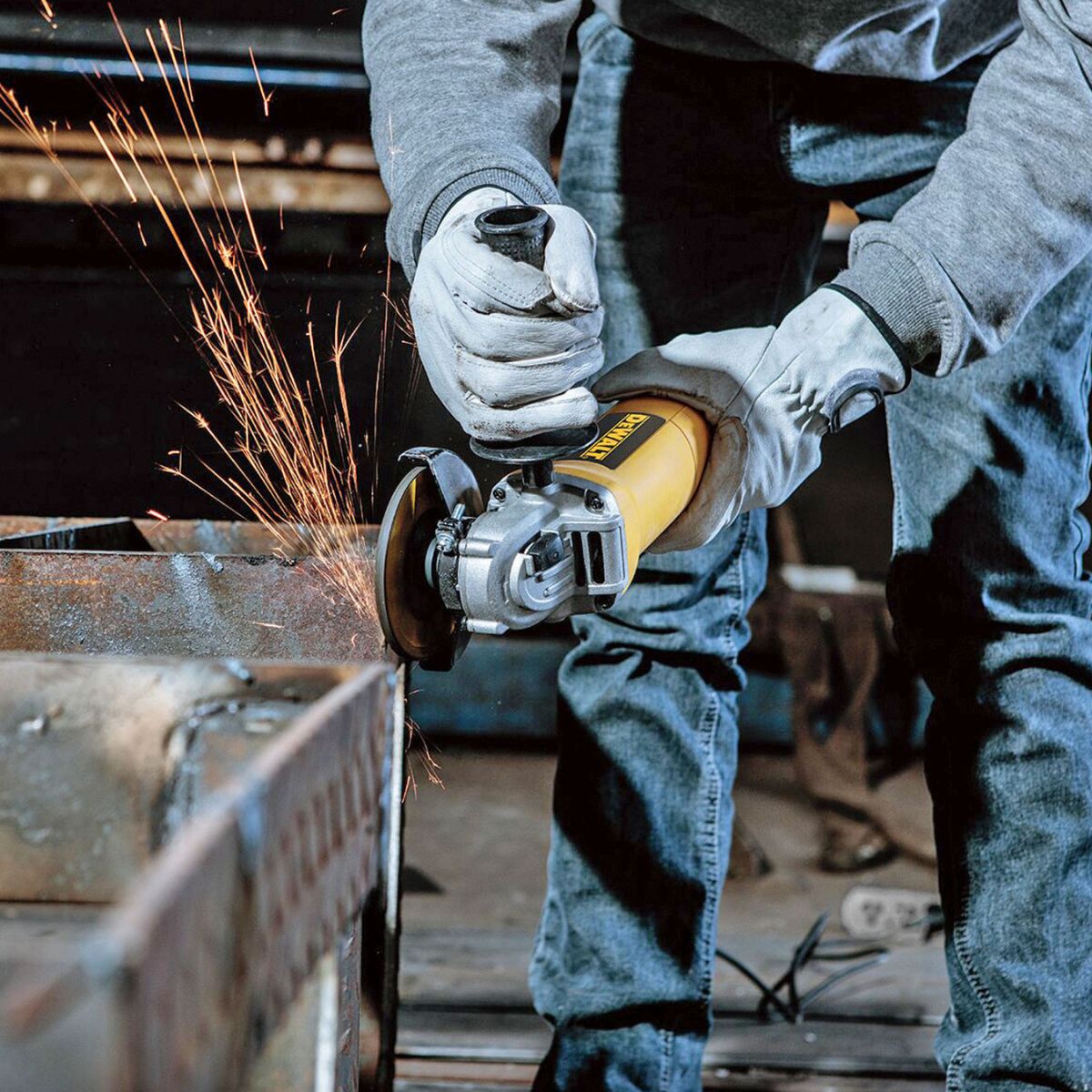 Електрически ъглошлайф DeWALT DWE4117 е мощен ъглошлайф, проектиран за професионални приложения с високи изисквания. С 950 W мотор и впечатляваща скорост от 12 000 об./мин, този инструмент е идеален за шлифоване на тежки конструкции, особено в металообработването. Моделът разполага с иновативен превключвател, който предотвратява случайното пускане на уреда, когато е заключен, и изисква нулиране преди повторно активиране.