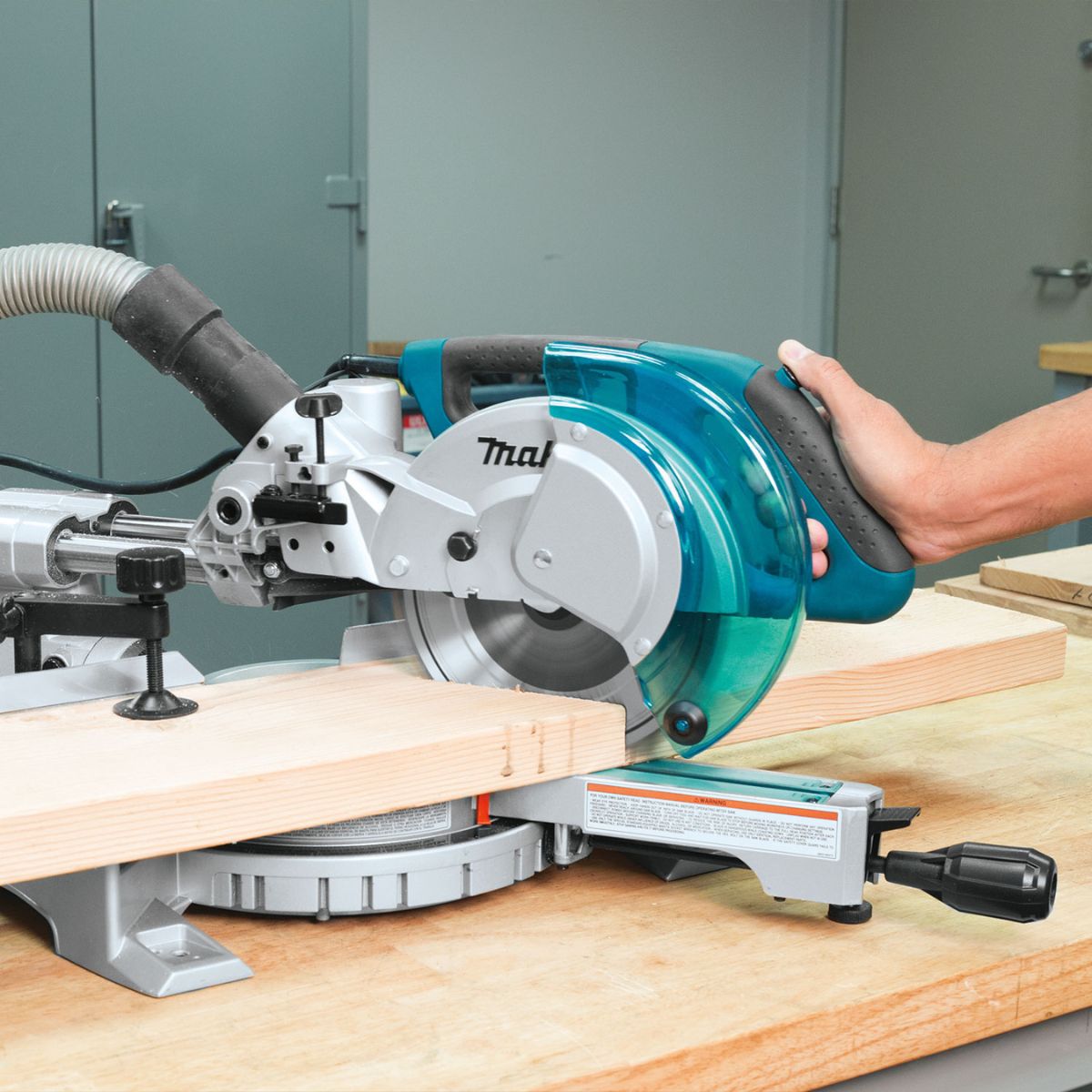 Електрически настолен циркуляр с герунг Makita LS0815FLN е висококачествен и многофункционален герунг трион, който отговаря на високите изисквания на професионалните потребители. Оборудван с лазерен маркер, който ви помага да следвате линията на рязане по-лесно и точно. Циркулярът разполага със завъртащ се герунг, който позволява рязане под ъгъл от 50 градуса наляво до 60 градуса надясно. Инструментът е оборудван с двойни водещи механизми, които са защитени срещу вибрации. LS0815FLN разполага също със система за ефективно прахоулавяне, което помага да поддържате работната област чиста от прах и отпадъци, осигурявайки ясна видимост и по-добър контрол по време на рязането. С функция за плавният старт, който позволява точно позициониране на ножа на повърхността на детайла в различни приложения. Разполага с LED работно осветление, което подсветява работната област и осигурява ясна видимост дори в затъмнени условия. Инструментът е снабден с ръкохватка за носене за лесно пренасяне и удобство при пренасяне на триона до различни работни места. Лесната смяна на ълъла на рязане от 45 градуса до 48 градуса наляво и от 0 градуса (прав ъгъл) до 5 градуса надясно се осъществява чрез натискане на бутон.