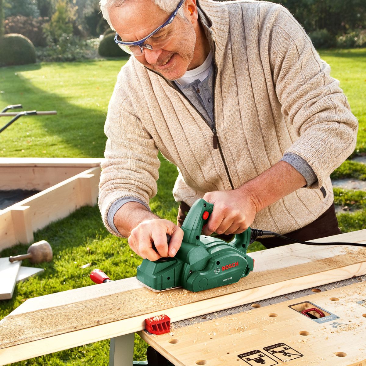 Електрическо ренде Bosch PHO 1500 е мощен и компактен инструмент, идеален за рендосване, скосяване на ръбове и отстраняване на покрития от дърво. С 550 W мотор, то се справя с лекота със задачи, изискващи дълбочина на рязане до 1.5 мм. Системата ножове Woodrazor осигурява бързи и висококачествени резултати, а едностранното изхвърляне на стърготини позволява свързване към прахоуловителна торба или прахосмукачка за по-чиста работна среда. Автоматично активиращата се пета за поставяне защитава както ножа, така и работната повърхност, гарантирайки дълготрайност и удобство при работа.