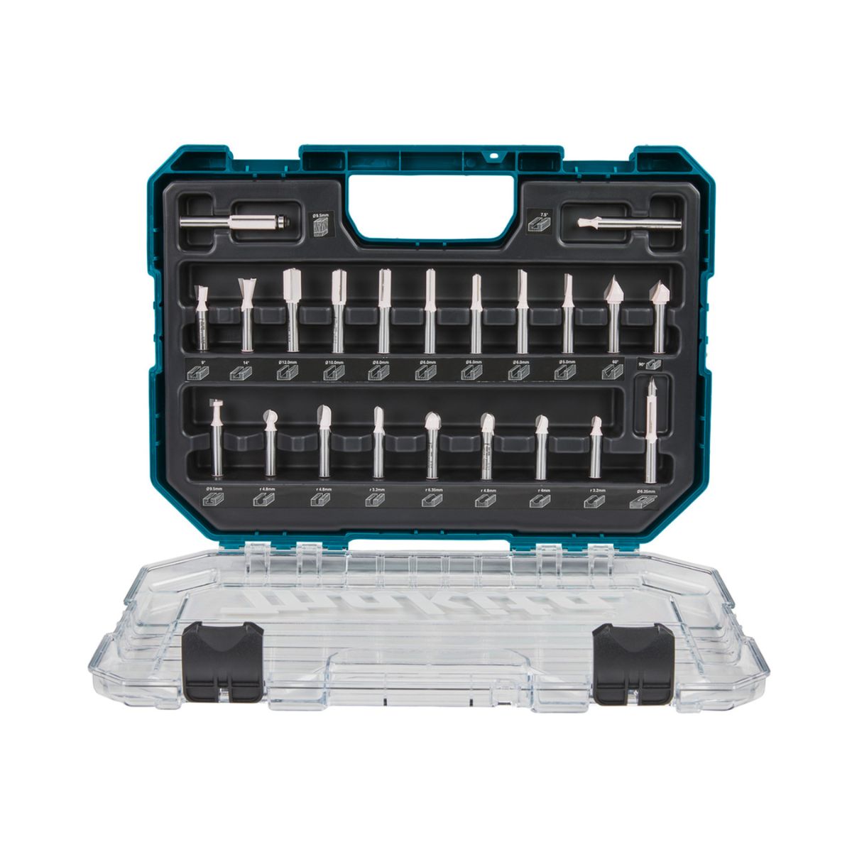 Фрезери за дърво Makita D-74784 представлява надеждна селекция от 22 висококачествени инструмента. Включва разнообразие от фрезери с диаметър на опашката 8 мм. Различните по размер накрайници са подходящи за обработване на дървесина, ПДЧ, MDF и други дървени материали. Доставят се в пластмасова кутия за лесно съхранение.