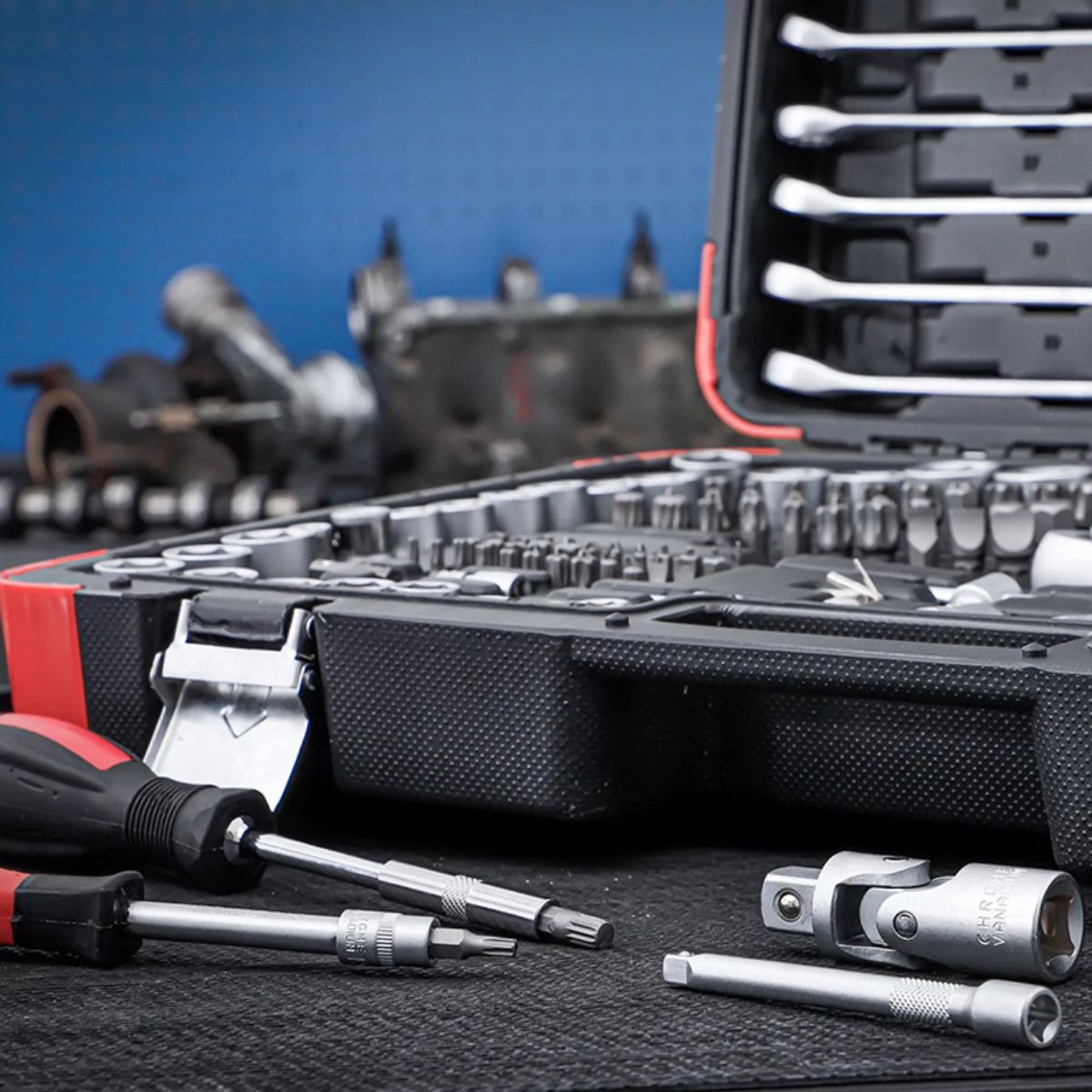• 5 удължителя 1/4″: 50 и 100 мм, 3/8″: 125 мм, 1/2″: 125 и 250 мм