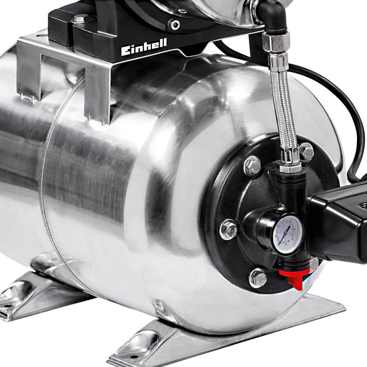 Хидрофорна помпа Einhell GC-WW 1250 NN представлява удобна алтернатива за икономия на вода, предоставяйки възможност за използване на резервоари, шахти, кладенци или цистерни за домашни и градински нужди. Със своя корпус от неръждаема стомана инокс и ключ за включване/изключване, тази хидрофорна помпа е проектирана за висока ефективност. Помпата разполага с електрически мотор с мощност 1200 W, който осигурява висока всмукателна мощност, интензивно налягане и капацитет на подаване, достигайки до 5000 литра на час. Електрическият мотор не изисква поддръжка и е оборудван със защита от топлинно претоварване. Със свойте 20 литра стоманен резервоар под налягане и вграден манометър за измерване на налягането, хидрофорната помпа осигурява вода под постоянно налягане за дома или градината. Превключвателят за контрол на налягането компенсира разликите в налягането автоматично. С висококачественото механично уплътнение и лесното стартиране чрез отделен отвор за пълнене на вода, както и пробката за източване, хидрофорната помпа е удобна за употреба и поддържане. Закрепва се стабилно на основа с отвори, което прави инсталацията лесна.