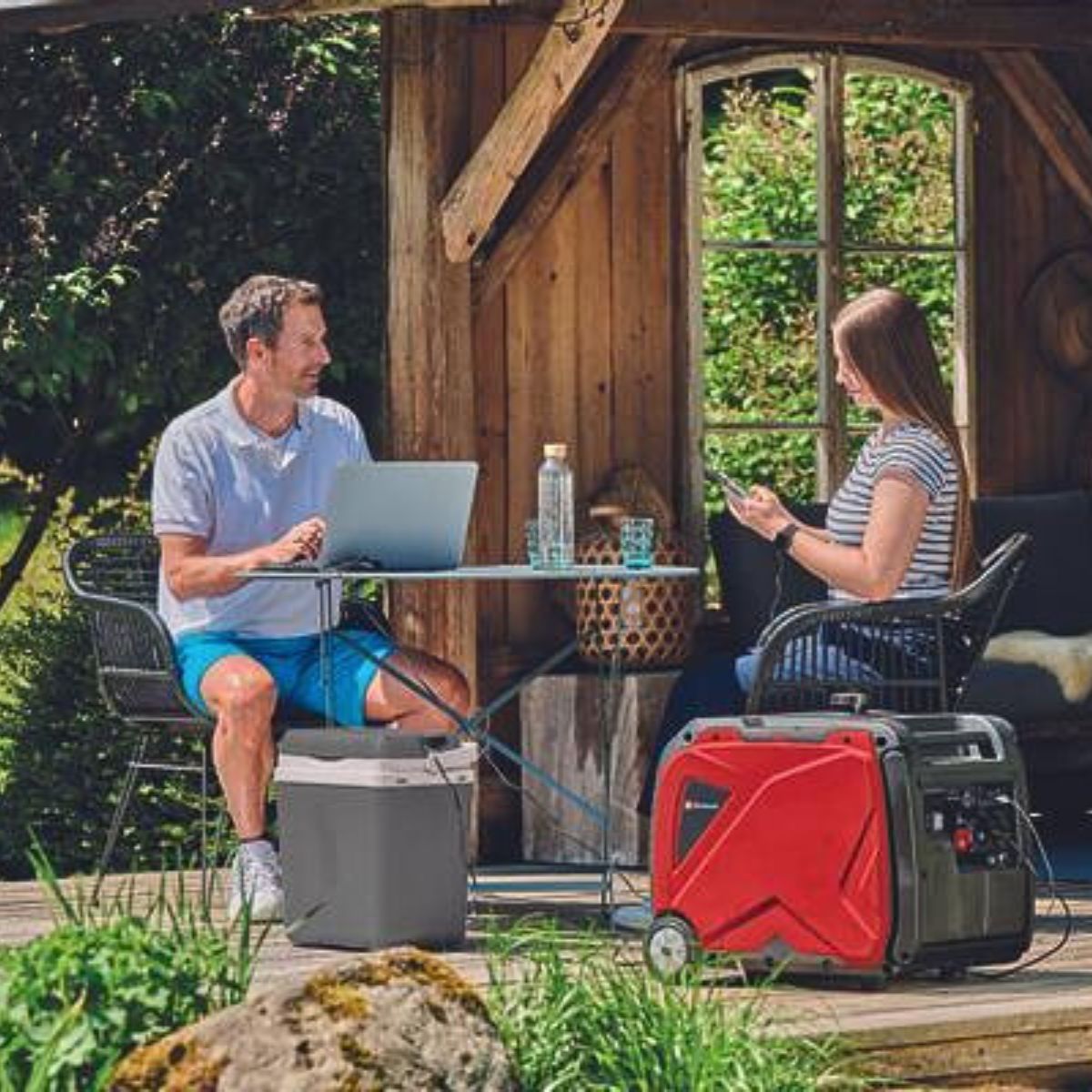 Инверторен бензинов генератор на ток Einhell TЕ-IG 3500 представлява идеално решение там, където е необходимо генериране на електричество независимо от наличието на електрическа мрежа. Генераторът е задвижван от мощен, здрав и нискоемисионен 4-тактов бензинов двигател с инверторна технология, което осигурява стабилна мощност без пикове на напрежението. Функцията E-Start гарантира лесно пускане в експлоатация, а генераторът може да бъде стартиран и чрез кабел. Затвореният дизайн на генератора е проектиран за минимално ниво на шум, осигурявайки тиха работа. Устройството е оборудвано с превключвател за претоварване и прекъсвач за ниско ниво на маслото, което гарантира безопасна експлоатация. Генераторът предоставя електрозахранване чрез два контакта по 230 V и разполага с 2 USB порта и 12 V порт за удобно зареждане на мобилни устройства и други електронни уреди. Със своята форма на количка, колела и дръжка, генераторът е лесен за транспортиране. Осигурява време на работа при 2/3 натоварване то 6.5 часа.
