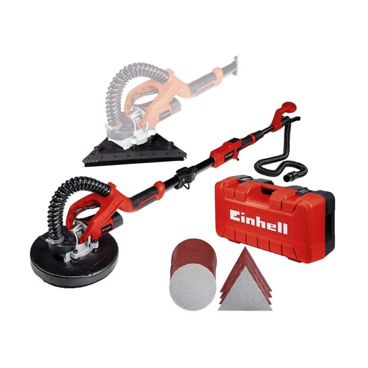 Жираф за шлайфане Einhell TE-DW 225 X е ефективен помощник за ремонтни дейности и големи проекти в дома. С мощен 750-ватов мотор и здрава ъглова метална предавка, тя улеснява шлайфането на гипсокартон, както и премахването на остатъци от мазилка или тапети. С обороти от 600 до 1500 в минута и диаметър на диска 225 мм, този модел е стабилен и надежден за домашна употреба. Сменяемата шлифовъчна подложка, кръгла или триъгълна, дава гъвкавост за различни задачи. Дългата телескопична ръкохватка се разтяга до 165 см и е сгъваема за лесно съхранение, а пружинният четков пръстен и въртящите лагери осигуряват мобилност и прецизност във всяка позиция, включително над главата.