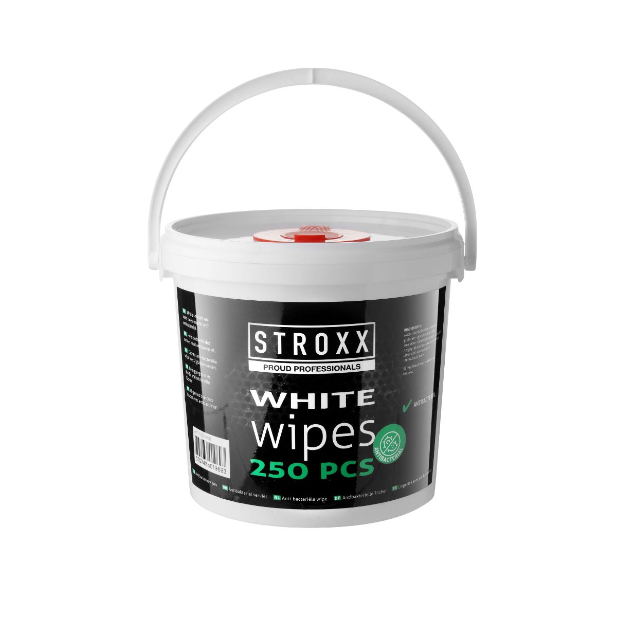 Кърпички Stroxx са антибактериални мокри кърпи, предлагащи се в удобна затваряща се кофа от 250 бр. Те са изключително подходящи за почистване на всякакви повърхности от различни субстанции като грес, лепило, силикон и вскякакви материали, които биха били трудни за почистване. Те биха се справили също и със всякакви бои, както и такива на водна основа, като са напълно безопасни за почистване и на ръце.