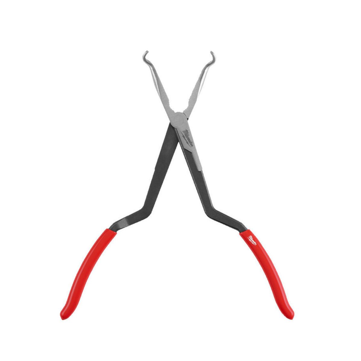 Клещи за маркуч Milwaukee 4932492501 са проектирани с кръстосани дръжки с дълбок обхват, които осигуряват максимален достъп в тесни пространства. Тяхната конструкция позволява прецизен и удобен достъп до труднодостъпни зони, което ги прави изключително функционални за професионална употреба. Тези клещи разполагат с многофункционални зони за захващане, които са подходящи за работа с разнообразни материали, включително винтове, кабели и кръгли части. Системата със сила на захващане с една става осигурява по-голям контрол и по-добро сцепление в сравнение с традиционните инструменти с двойна става. Заоблените върхове са специално създадени за безопасно захващане на маркучи, без риск от повреда на материала. Това прави клещите идеални за чувствителни и деликатни приложения, където е необходима прецизност.
