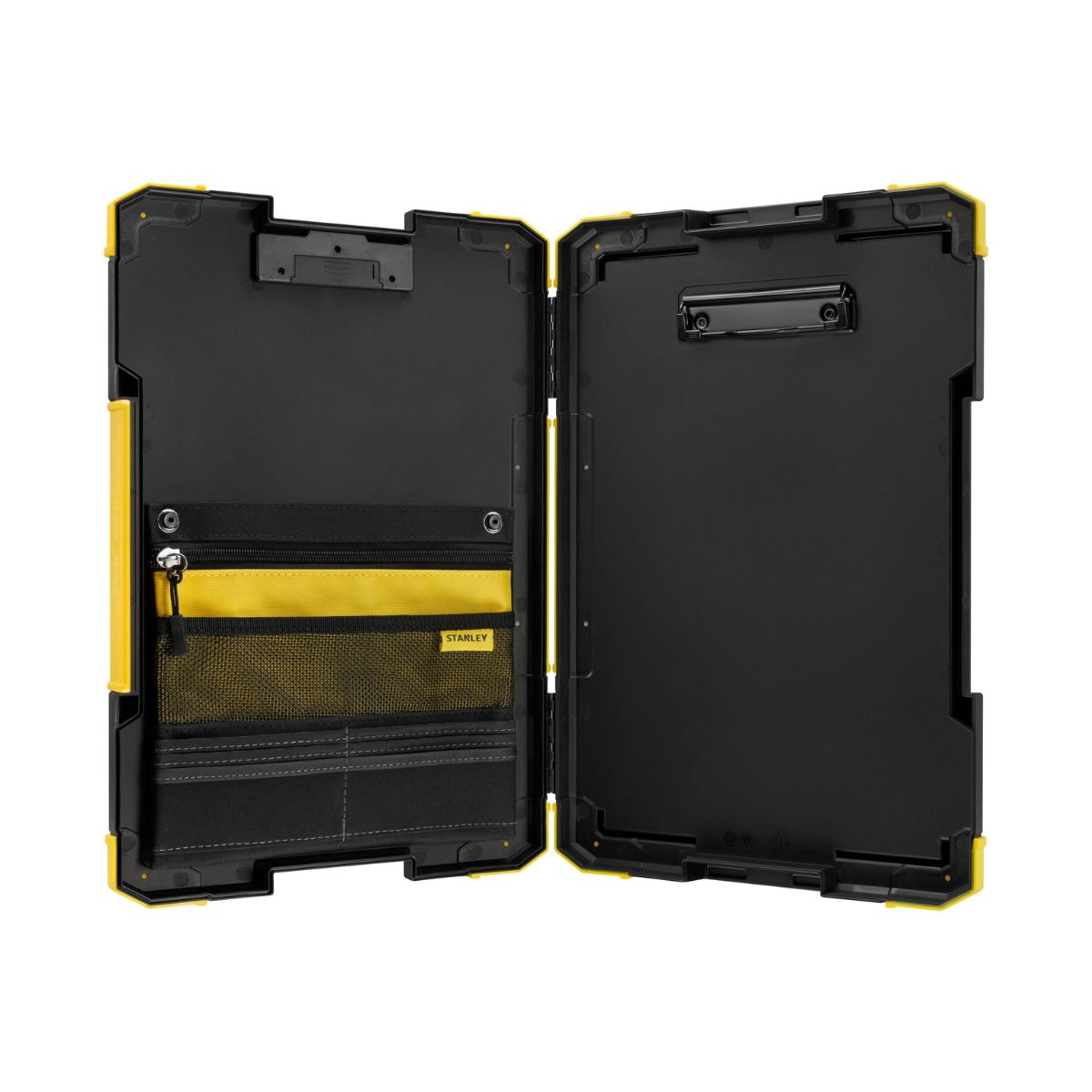 Клипборд за документи Stanley FMST82721-1 е изключително удобен и компактен аксесоар за всеки майстор. Той не само ще бъде ваша упора, когато искате да подпишете важни документи, но и ще ви помогне да ги съхраните след това в удобното вътрешно пространство. Подходящ е и за съхранение на личните ви вещи като телефон, документи, пари и други важни принадлежности, докато вие работите. Разполага с удобен клипс за захващане на документите, както и с LED фенерче за хората, които работят до късно. Вътрешното пространство също е организирано чрез джоб с цип за максимален комфорт. Съвместим със системите за съхранение Stanley FATMAX и PRO-STACK и с гумени ъгли за дълъг експлоатационен живот.
