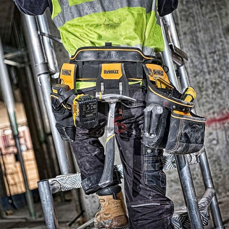 Ергономичен подплатен колан с дишаща мрежа за максимален комфорт при носенето на тежки инструменти. Колан от здрав и устойчив полиестер дение, стабилни каишки от кожа.