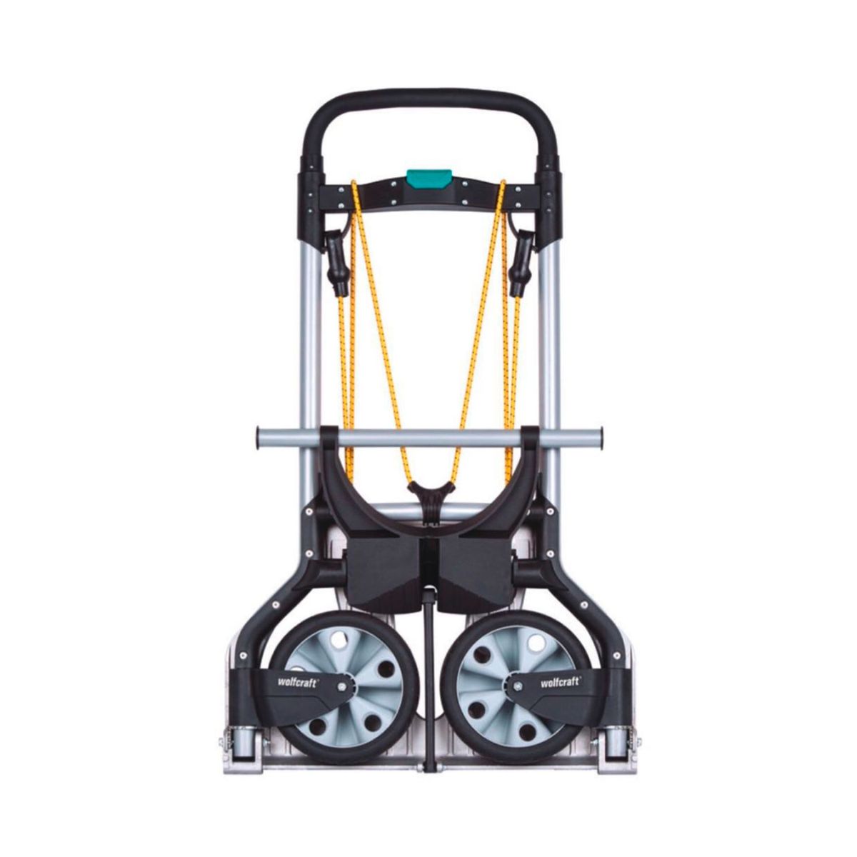 Количка за багаж с колела Wolfcraft TS 850 се отличава с изключителна компактност при своя сгънат вид. С едно леко движение, механизмът за трансформация бързо разгъва платформата и колелата в работно положение, предоставяйки мигновено решение за транспортиране. За допълнително удобство, багажната количка предлага регулируема височина. Това позволява на потребителя да адаптира височината според своите нужди, осигурявайки по-голямо удобство по време на работа. Напречната преграда на количката е изработена с закръглени форми, което е отлично решение за транспортиране на предмети с кръгла форма. Ръкохватката на количката също е издължена и закръглена, предоставяйки удобно и сигурно захващане, дори и при тежки или обемисти товари. Тя е способна да се справи с разнообразни видове товари, благодарение на двете точки за фиксиране, осигурявайки им надеждност и стабилност по време на пренасяне. С тегло от само 5.6 кг, багажната количка TS 850 на Wolfcraft е практично и леко решение за всекидневни нужди в транспорта на предмети