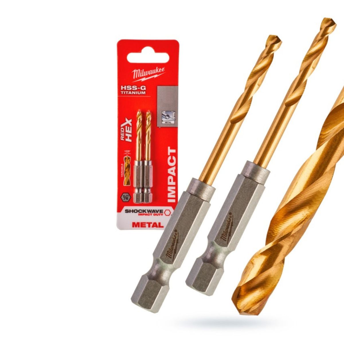 Комплект 2бр. свредла за метал ф 2.5×19/62мм Milwaukee HSS-G Titanium RED Hex