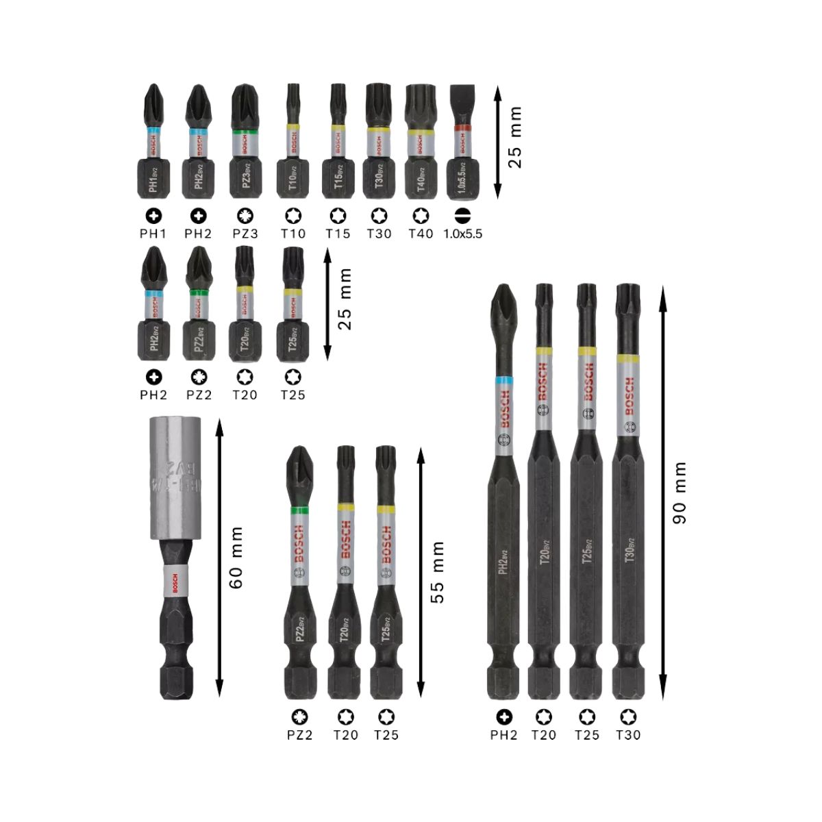Комплект битове Bosch 2608521U74 е перфектният избор за монтажници, които се нуждаят от здрави и надеждни битове за ежедневна работа. Изработени от термично обработена модифицирана стомана, те предлагат изключителна устойчивост на високи натоварвания и въртящ момент. Торсионната зона ефективно абсорбира натоварването, предотвратявайки счупване и удължавайки живота на битовете. Цветно кодираните пръстени улесняват разпознаването на типа на главата, а лазерните маркировки гарантират лесен избор на точния размер. Комплектът се предлага в здрава кутия с прецизно организирани държачи, които позволяват удобно съхранение и възможност за персонализиране на инструменталната ви кутия.