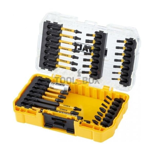 Комплектът битове Dewalt DT70732T FLEXTORQ е професионален комплект, състоящ се от 37 части, позволяващ множество комплекти да бъдат подредени и заключени заедно. DT70732T разполага с популярни битове за завинтване за професионална и непрофесионална употреба. Битовете са проектирани със зона на въртящ момент, позволявайки оптимална гъвкавост на битовете и по-дълъг живот при взискателни приложения. Пълно прилягащите глави предотвратяват хлабината и завъртането на главата на винта. Те се съхраняват в свързващ твърд калъф, съвместим със системата TSTAK.