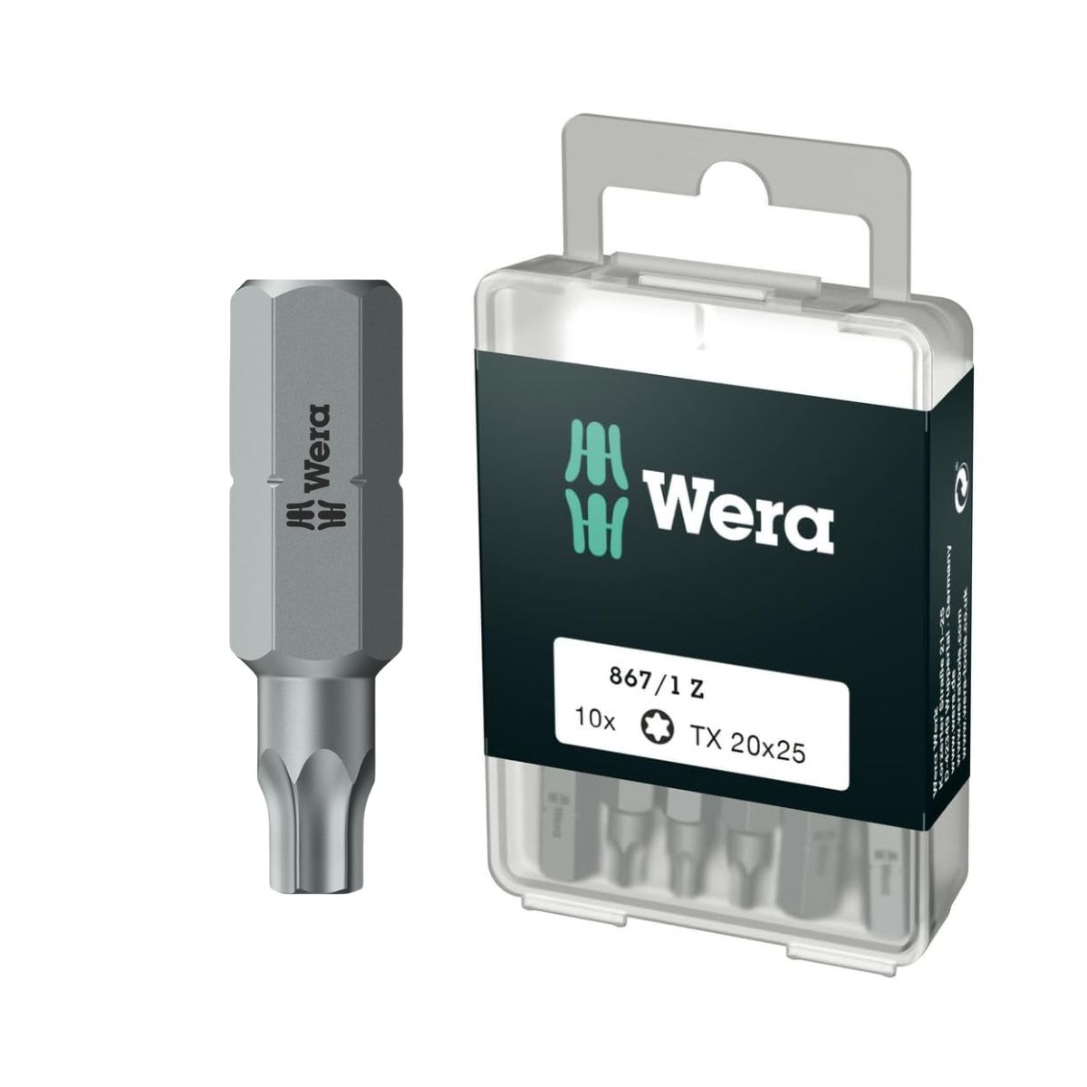 Комплект битове Wera 05072408001 включва 10 броя със захват 1/4″. Изключително подходящи за употреба с винтоверт или отвертка. С размери TX20 x 25 мм, те се доставят в практична пластмасова кутия, идеална за съхранение и организация.