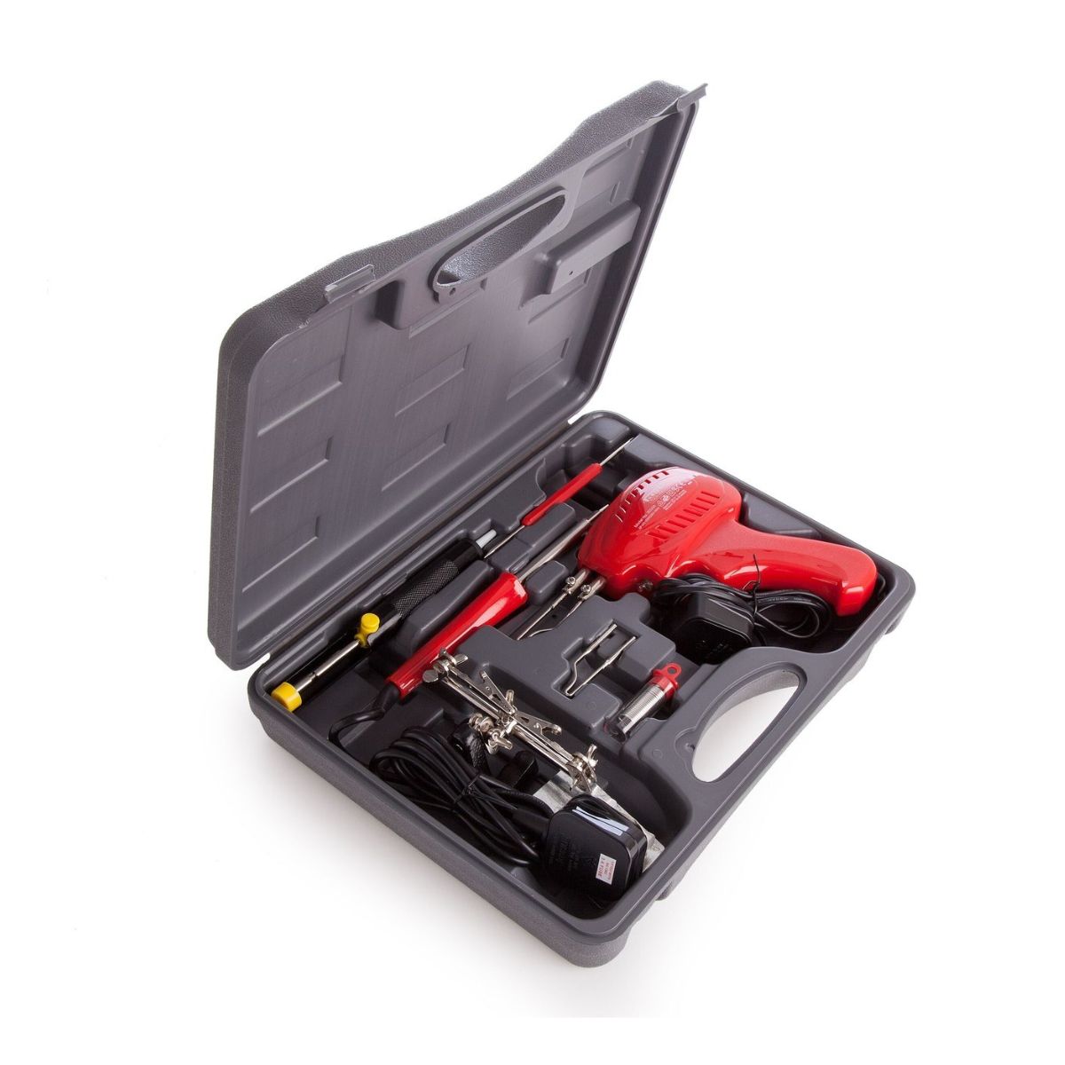 Комплект електрически поялник Sealey SD300K е част от широката гама ръчни инструменти на Sealey, предназначени за ежедневна употреба. Той включва 100 W пистолет за незабавно нагряване, 30 W поялник със стойка, опора, смукател за спойка, скрепер/сонда, резервни накрайници за запояване и ролка тел за спояване с флюсова сърцевина. Поялниците са снабдени с 3-щифтови щепсели.