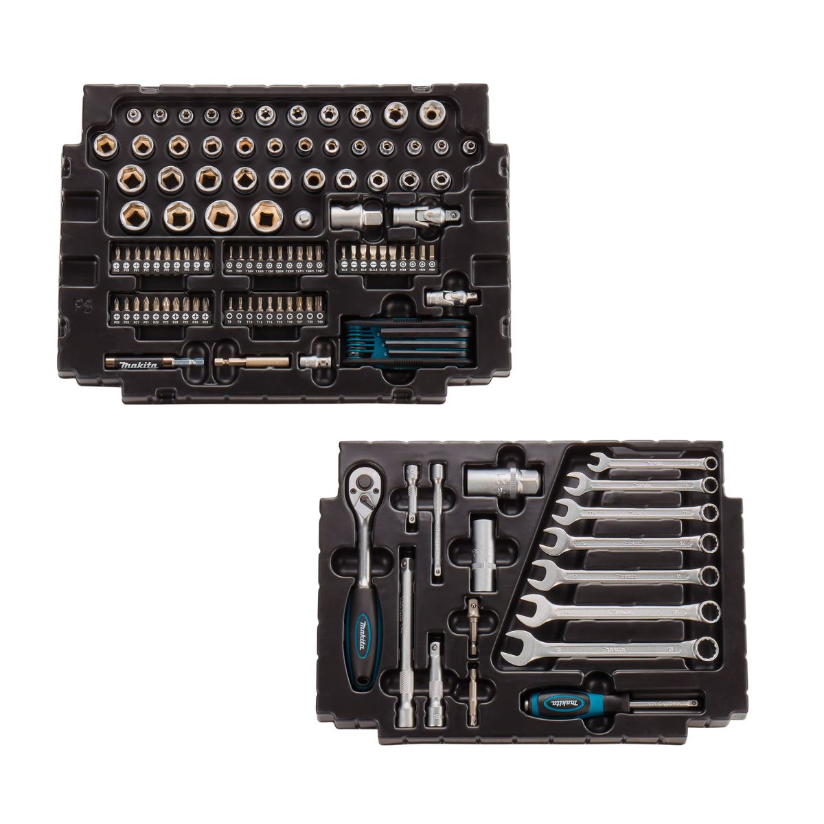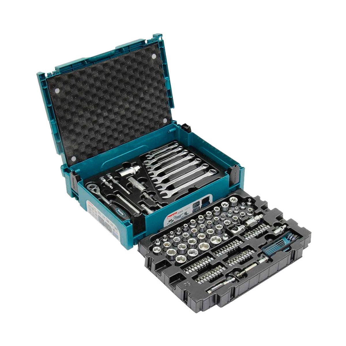 Комплект гедоре Makita E-08713, състоящ се от 120 части, предлага богата гама от инструменти с размери 1/4″ и 3/8″, подходящи за широка гама от монтажни и сервизни дейности. Всички елементи са изработени от висококачествена хром-ванадиева стомана, която гарантира висока издръжливост, устойчивост на натоварване и дълъг живот при интензивна употреба. Комплектът е организиран в здрав и удобен пластмасов куфар Makpac, който улеснява съхранението, пренасянето и подреждането на вложките и аксесоарите. Благодарение на универсалността си и здравата конструкция, този комплект е отличен избор както за професионални майстори, така и за домашни ремонти и хоби дейности.