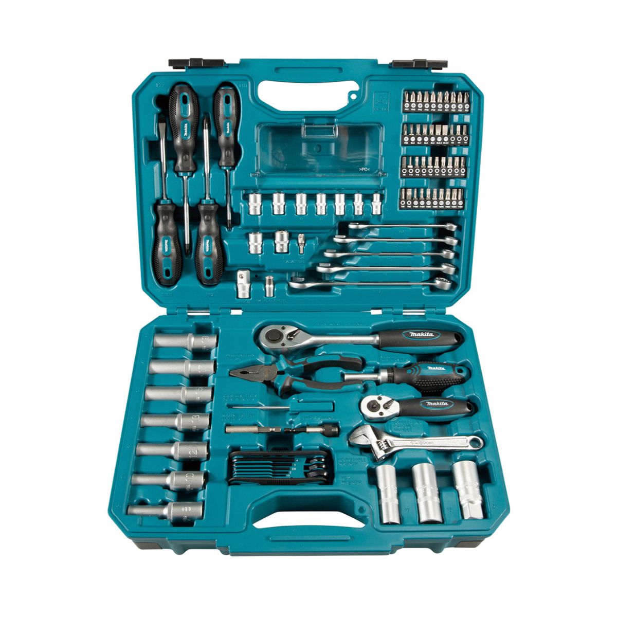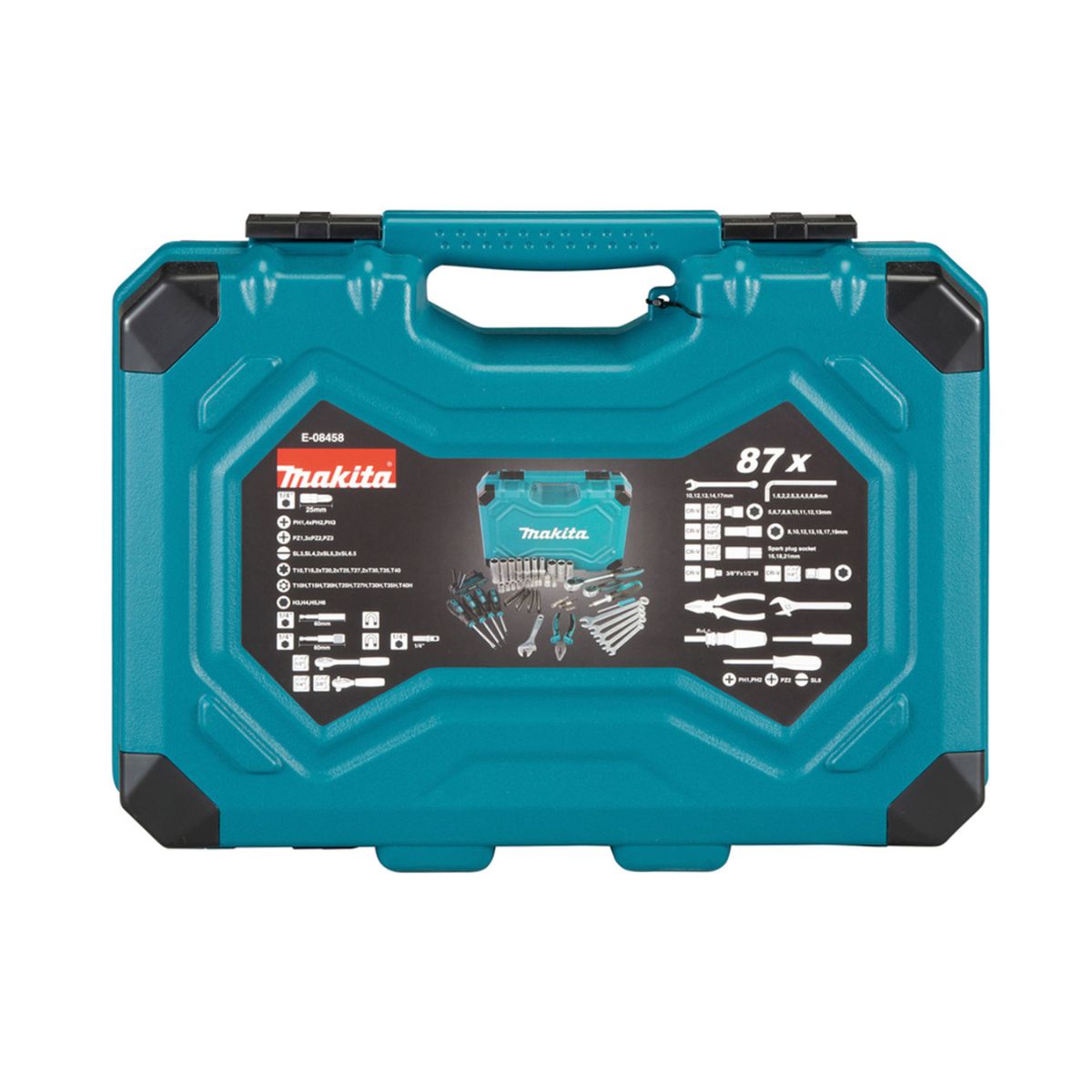 Комплект инструменти и накрайници Makita E-08458 представлява универсален комплект от 87 броя, предназначен за домашен ремонт. Този пълен набор инструменти предлага широка гама от възможности и аксесоари, позволяващи качествена работа както у дома, така и в работилницата. Включеният качествен куфар улеснява преноса и осигурява удобство при работа на място. Съставен от 87 елемента, този набор от инструменти отговаря на най-високите стандарти за качество и осигурява необходимата гъвкавост за изпълнение на разнообразни задачи. Подходящ е както за професионални, така и за домашни майстори, предоставяйки всичко необходимо за разнообразни проекти и ремонти.