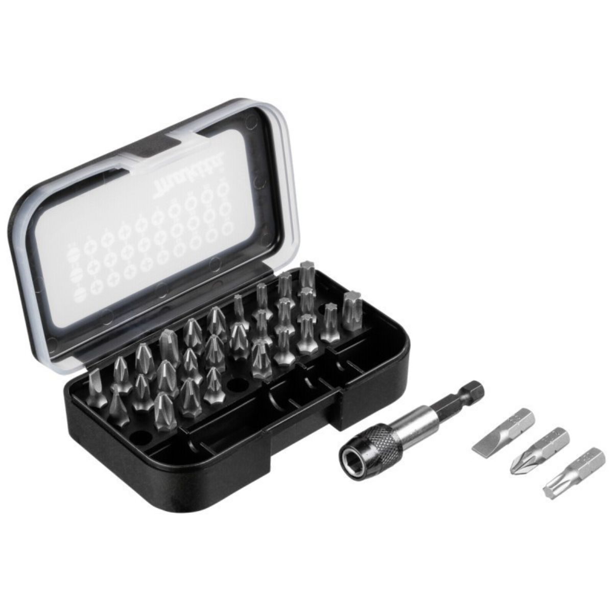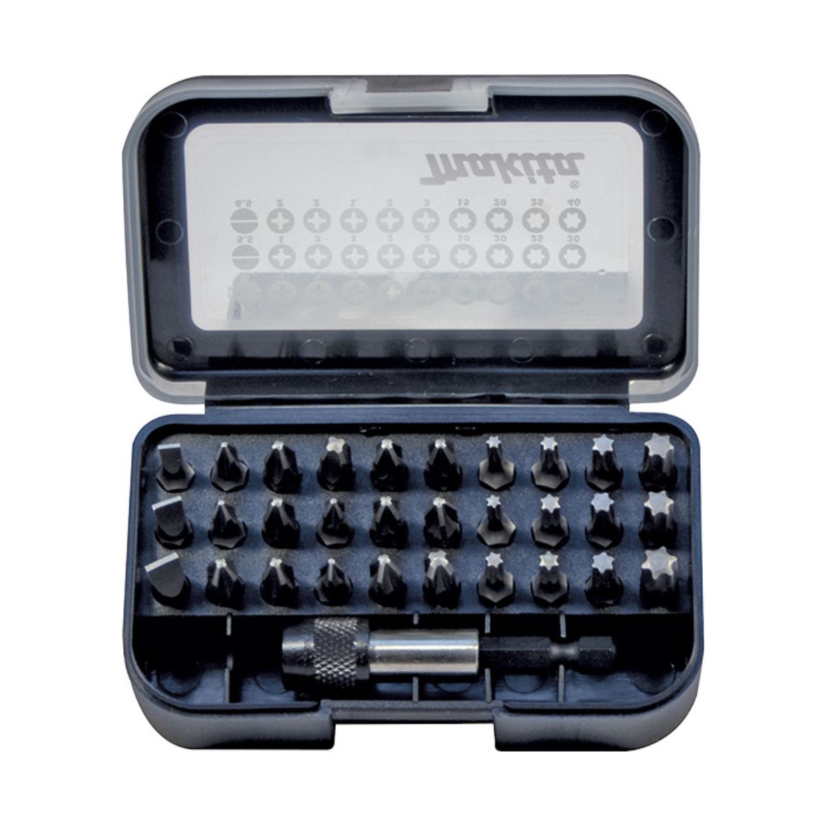 Комплект накрайници Makita D-30667 съдържа 30 накрайника с дължина 25мм и магнитен държач. Изработени от Cr-V, осигуряваща повече издръжливост и дълъг живот. Оборудван с удобна пластмасова кутия. Битовете са със специално покритие, устойчиво на ръжда и са подходящи за отвертки, бормашини и винтоверти.