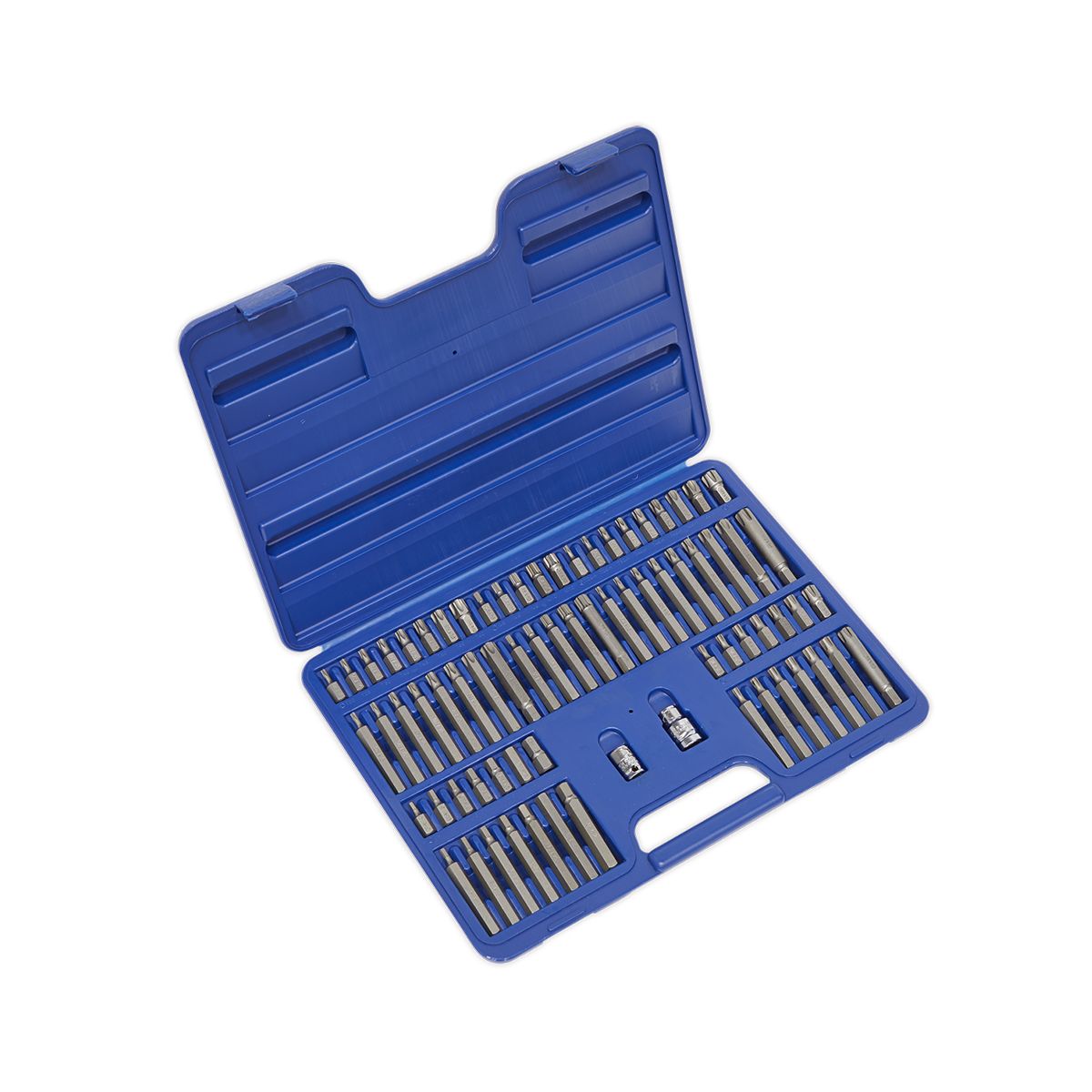 Комплект накрайници Sealey AK21974 е част от широката гама ръчни инструменти Premier, предназначени за ежедневна професионална употреба. Съставен е от стоманени накрайници от хром-ванадий 6150, които са термично закалени до 52-53 HRC за допълнителна здравина. Този комплект е с 1/4″ и 3/8″ захват с 10 мм шестостенни хром-ванадиеви стоманени адаптери за битове. Доставя се в удобна кутия за съхранение, която разполага с наклонена тава за бърз и лесен избор на необходимите битове. Изключителната здравина и удобство на използване правят комплекта идеален за широк спектър от професионални приложения, където точността и надеждността са от съществено значение.
