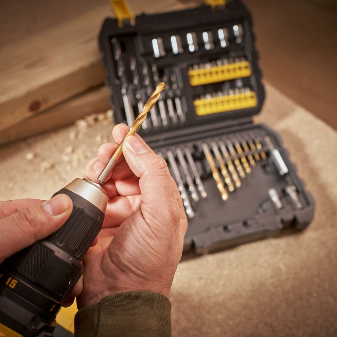 Комплект накрайници и свредла Stanley STA88546 включва 50 висококачествени части, предназначени за надеждна работа върху тухли, зидария, мека стомана, цветни метали и дърво. Всеки елемент е изработен с прецизност за дълъг живот и максимална ефективност при пробиване и завинтване. В комплекта е включен магнитен държач, който осигурява стабилно закрепване на 25 мм битове и по-бърза смяна по време на работа. Всички части са подредени в здрав и удобен куфар, който гарантира лесно съхранение, транспорт и отлична организация на инструментите.