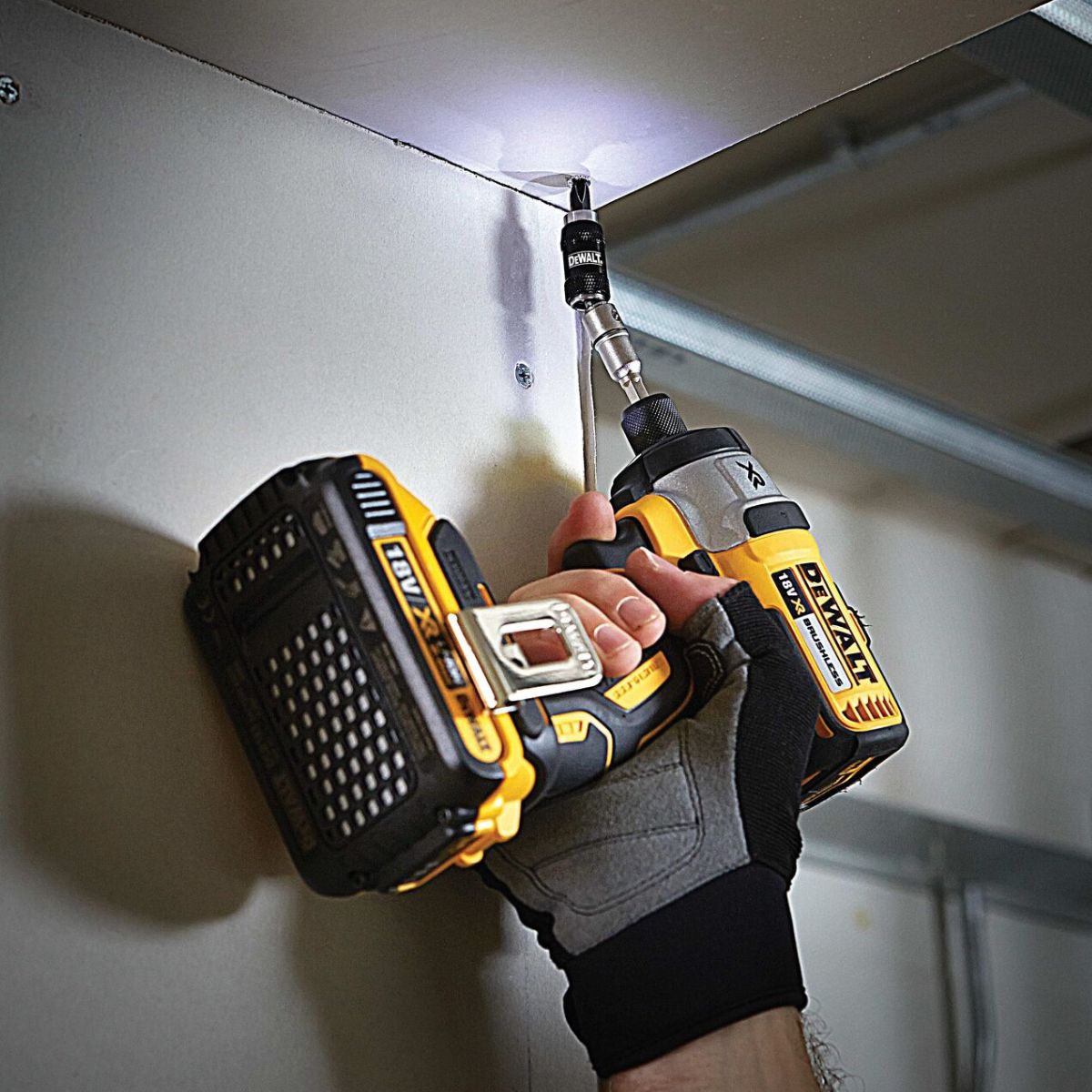 Комплект накрайници с държач Dewalt DT70578T включва 10 части, сред които здрави, устойчиви на удари битове и магнитен адаптор. Силният магнит осигурява удобна работа с една ръка, а въртящото се съединение позволява лесен достъп до труднодостъпни места, повишавайки ефективността при завинтване.
