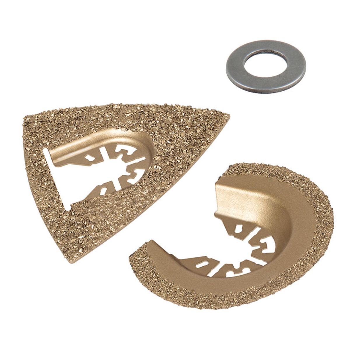 Комплект ножове за мултифункционален инструмент Wolfcraft 065 WLF1034 съдържа 2 бр висококачествени ножове за осцилатор, който предлагат отлична ефективност. Те предлагат чисто и прецизно рязане на различни материали, в зависимост от конкретната задача. Диамантените остриета гарантират устойчивост и дълъг живот. Starlock захватът осигурява надеждно задържане на инструмента и лесна смяна.