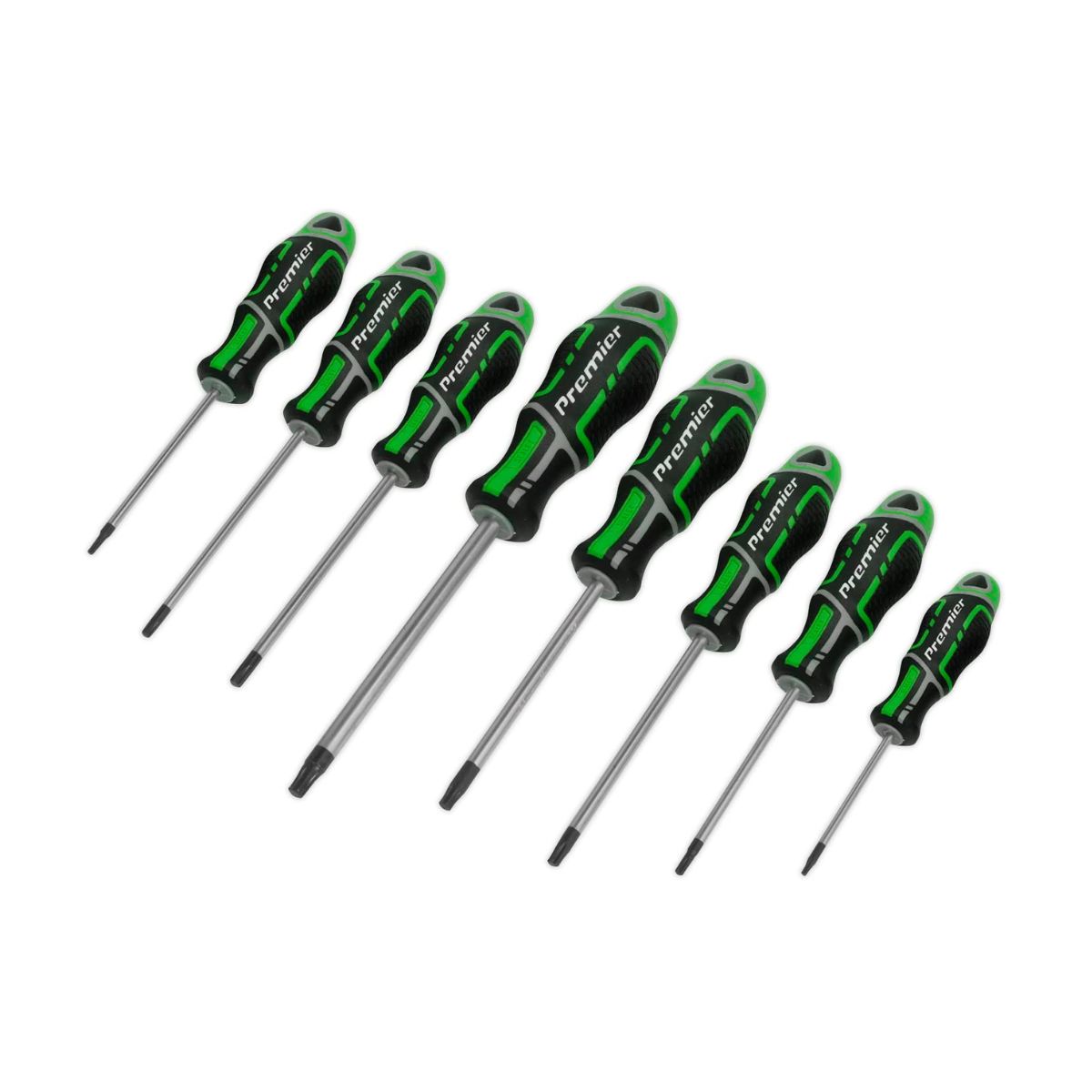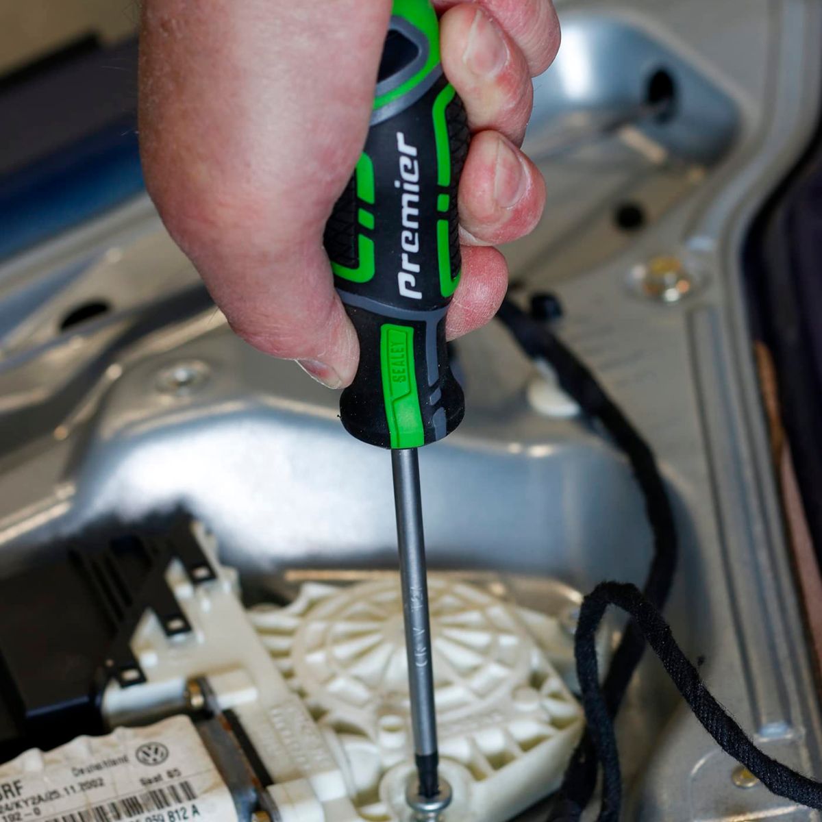 Комплект отвертки Sealey AK4323HV е част от висококачествената серия ръчни инструменти Premier, предназначени за професионална ежедневна употреба. Тези отвертки се отличават с висококачествени хром-ванадиеви накрайници и покритие, осигуряващо издръжливост и устойчивост на корозия. Върховете на отвертките са бластирани и магнетизирани, което гарантира надеждно задържане на винтовете и предотвратява изплъзването им. Ергономичните дръжки са изработени от полипропилен и TPV гума, осигурявайки мека и удобна ръкохватка, която позволява максимален контрол. Комплектът разолага с отвори за окачване, което предоставя алтернативни възможности за съхранение и улеснява достъпа до тях, когато са необходими.