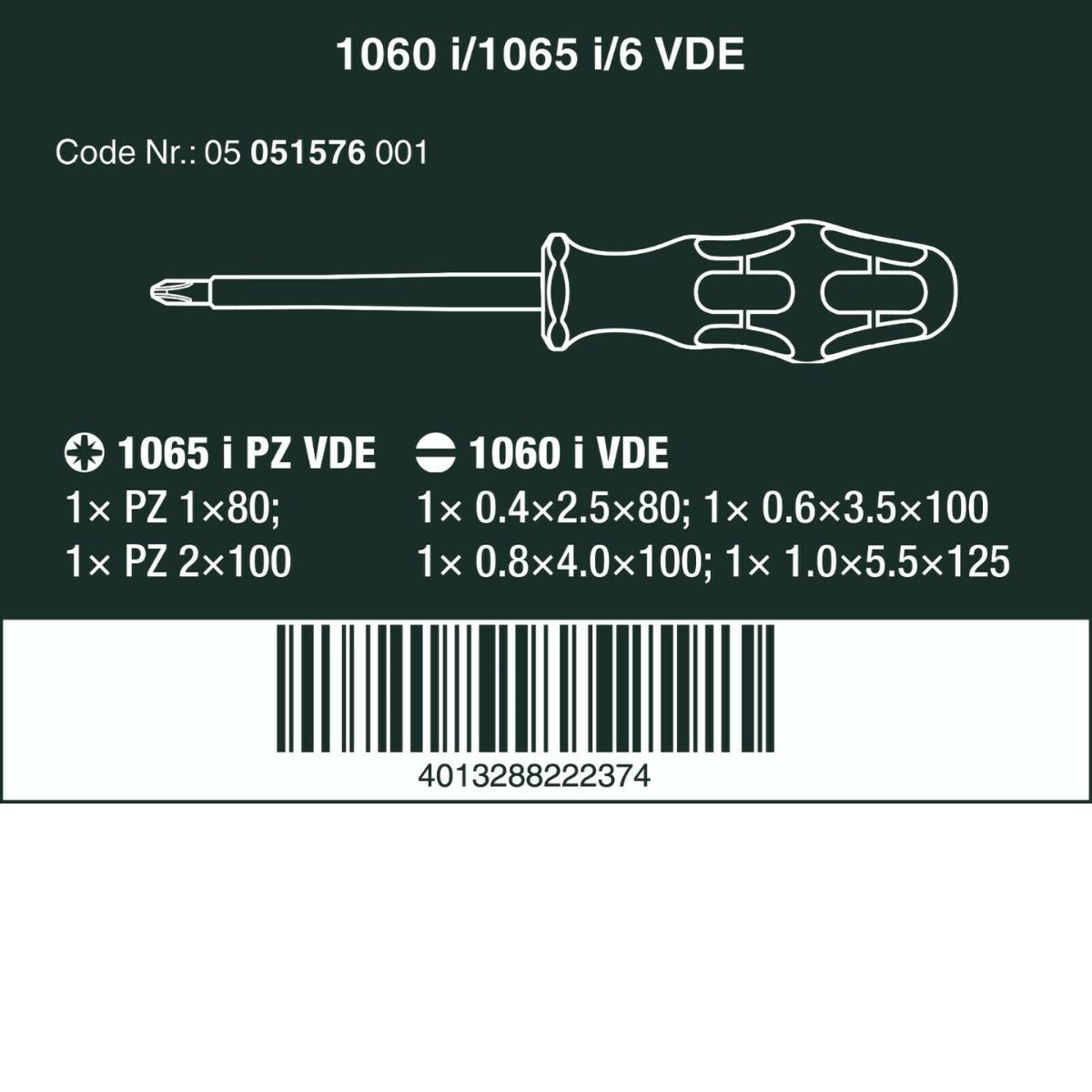 • 1 x Права отвертка 1060 i VDE: 0.4×2.5×80 мм