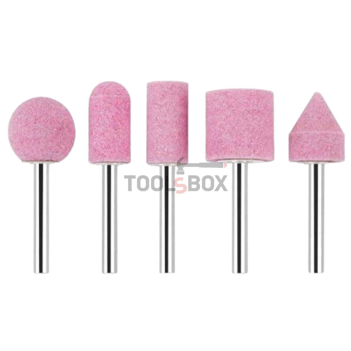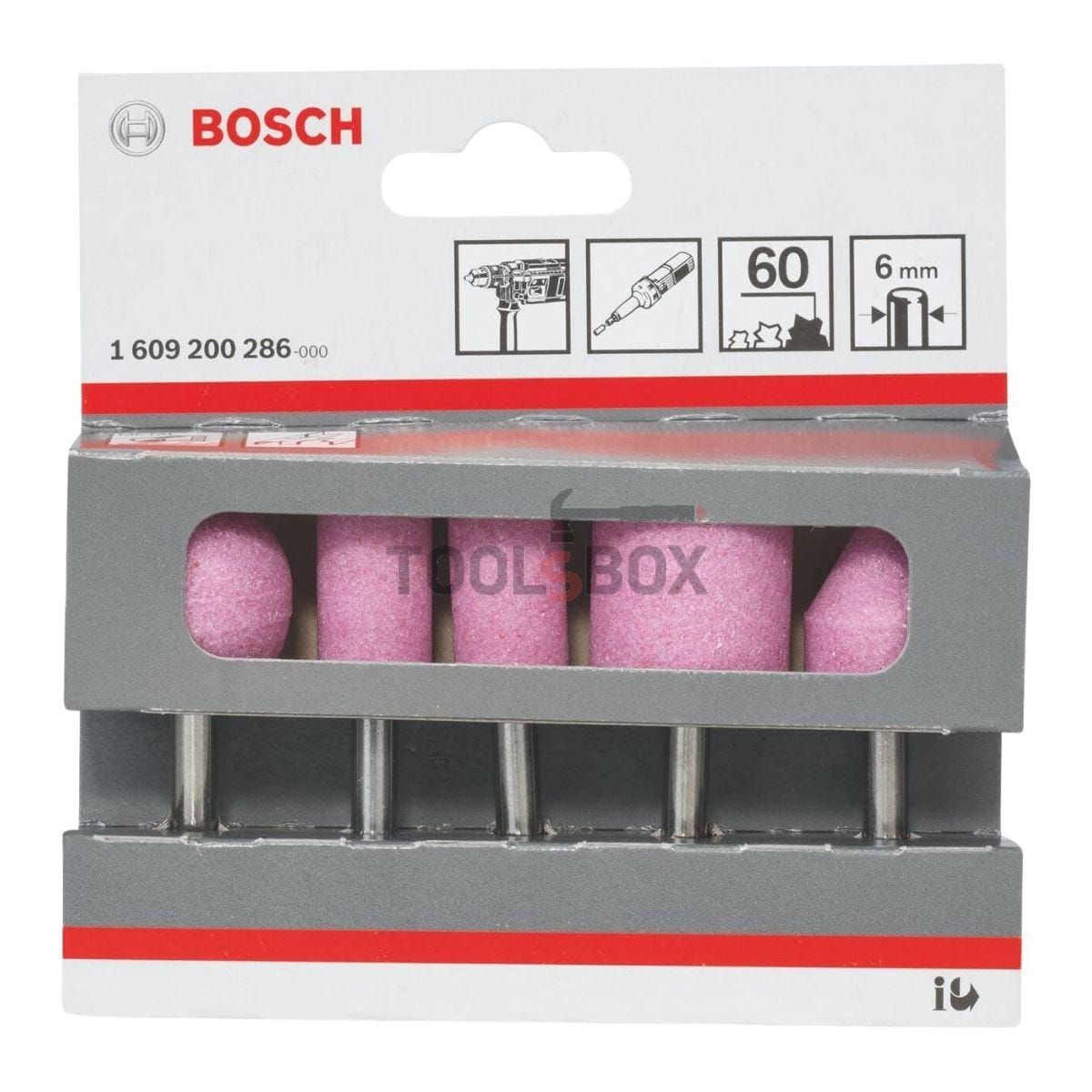 Комплектът BOSCH 1609200286 се състои от 5 броя щифтове с различна форма и големина, предназначени за обработка на незакалена и закалена стомана. За безопасно и ефикасно шлайфане и премахване на ръбове с прави шлайфмашини и бормашини.