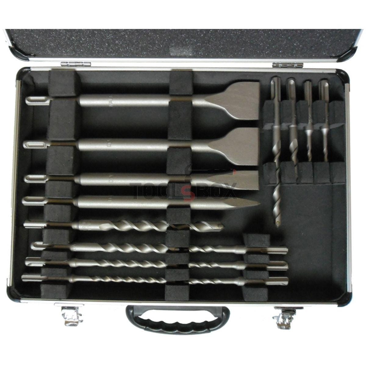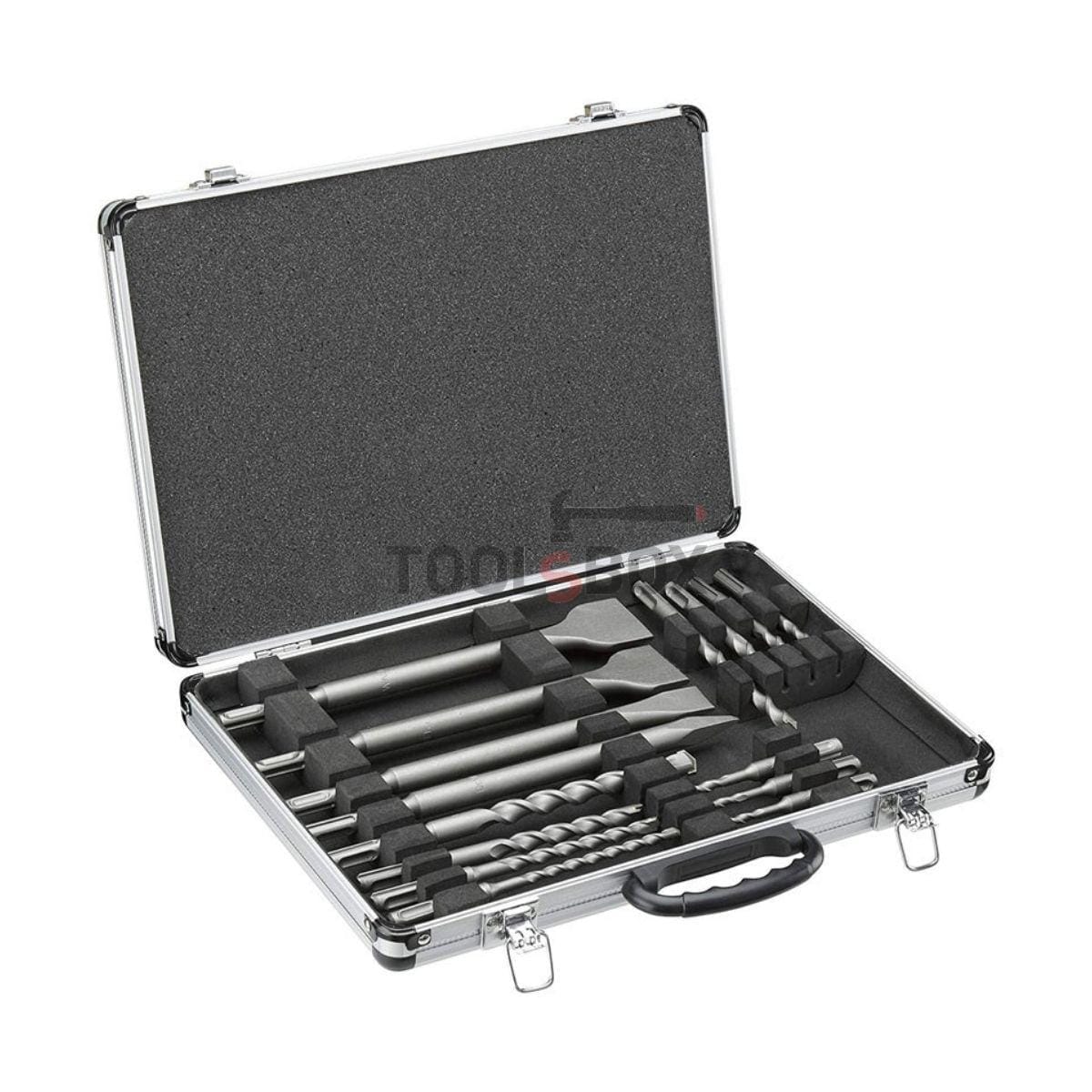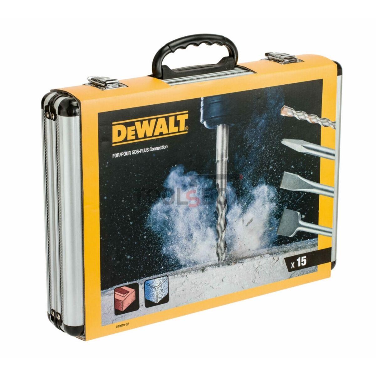 Комплектът DT9679 на Dewalt се състои от 15 части, подходящи за бързо пробиване на отвори за дюбели, анкери или отвори в зидария, камък, бетон и тухла/блокова зидария със захват SDS-plus. Специално разработена 2-канална спирала за ефективно отстраняване на праха. Оптимизиран дизайн на пробивната глава с карбиден накрайник с 2 режещи ръба. Свредлата и длетата са опаковани в здрав алуминиев корпус със здрава дръжка. Специално произведен за професионалисти.