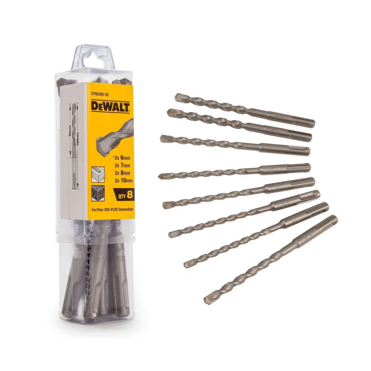 Комплект свредла за бетон Dewalt DT60300 е подходящ за бързо пробиване на дупки, анкери или отвори в зидария, камък, бетон и тухла/блок. Главата с карбиден връх и 2 режещи ръба има оптимизирана конструкция, която осигурява бързо и прецизно пробиване. Спиралата с два канала е специално проектирана, за да помогне за ефективното отстраняване на прахта по време на работа. Комплектът е придружен от практична пластмасова кутия, която улеснява транспортирането и съхранението на свредлата и ги предпазва от повреди.