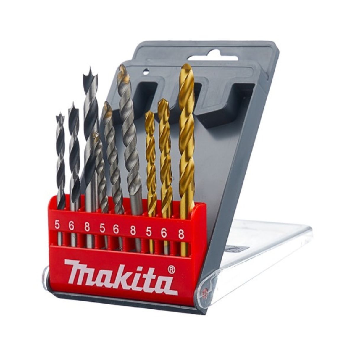 Комплект свредла за дърво, камък и метал Makita са висококачествени, идеални за пробиване на различни повърхности. Свредлата за дърво са изработени от инструментална стомана с центриращ връх за много точно начало на пробиването, за чисто пробиване без разкъсване. Свредлата за стомана са спирални, изработени от легирана високопроизводителна бързорежеща стомана съгласно DIN 338 с титан-нитридното покритие. Дяснорежещо спирално свредло тип N с цилиндрична опашка. Свредла с твърдосплавни пластини с цилиндрична опашка за бетон , зидария и естествен камък. За метал HSS-TiN