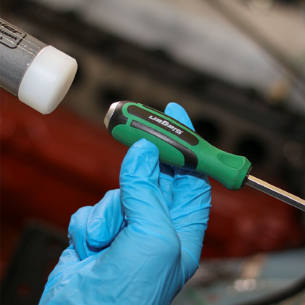 Комплект ударни отвертки и битове Sealey S01106 предлага професионално качество и е част от гамата висококачествени инструменти Siegen by Sealey, на достъпни цени. Съдържа пълен набор от ударни отвертки, шестостенни ключове и битове. Изработени са от хром-ванадиева основа и разполагат с магнетизиран край, улеснявайки процеса. Оформени меки дръжки за захващане с цветно кодиране за бързо разпознаване и удобство при работа. Доставя се в стойка за удобно съхранение и организация. Разполагат с издръжлива капачка на върха, която позволява работа с чук. Комплектът включва 44 бр, като 18 бр от тях отвертки, 10 бр накрайници, 16 бр шестостенни ключа за максимално удобство.