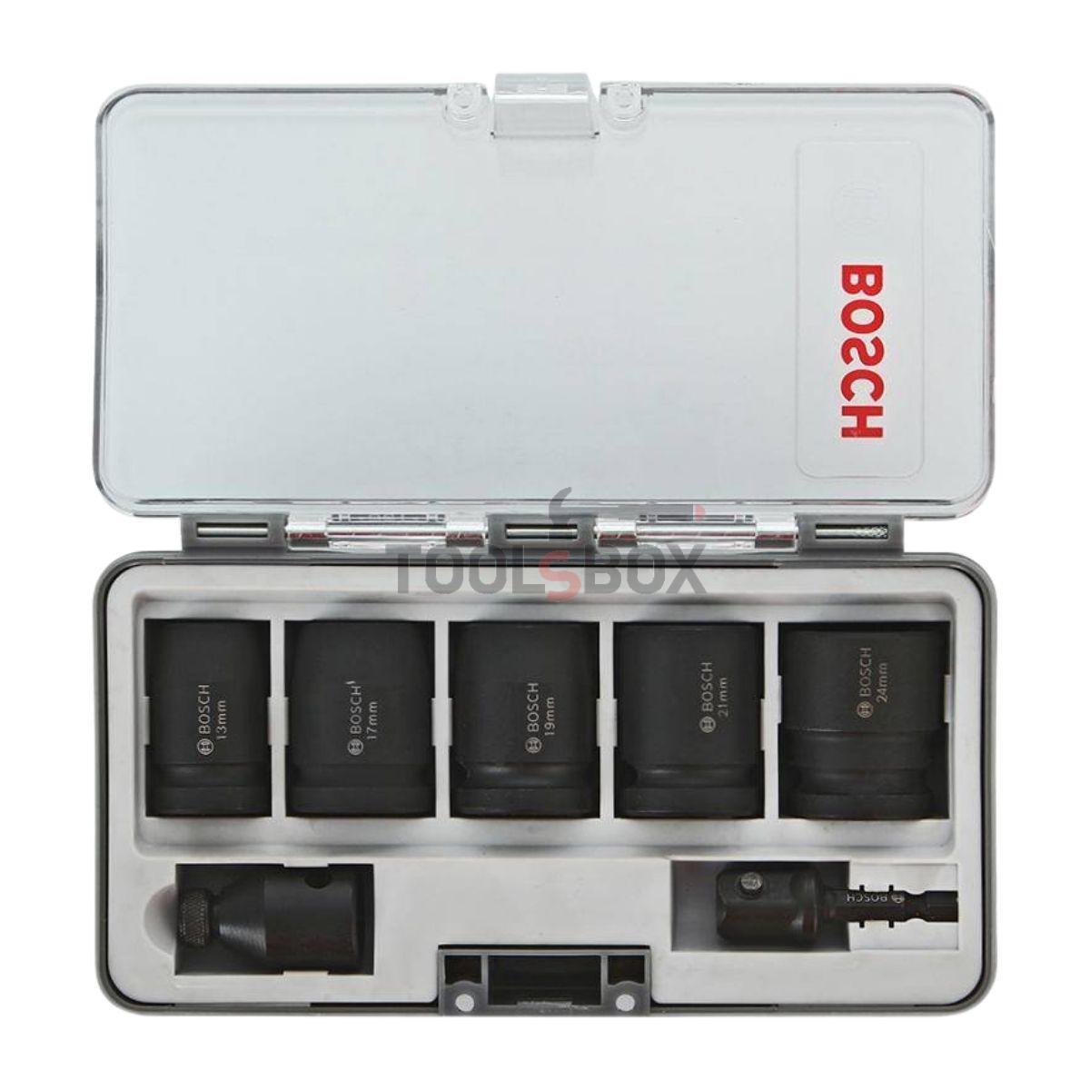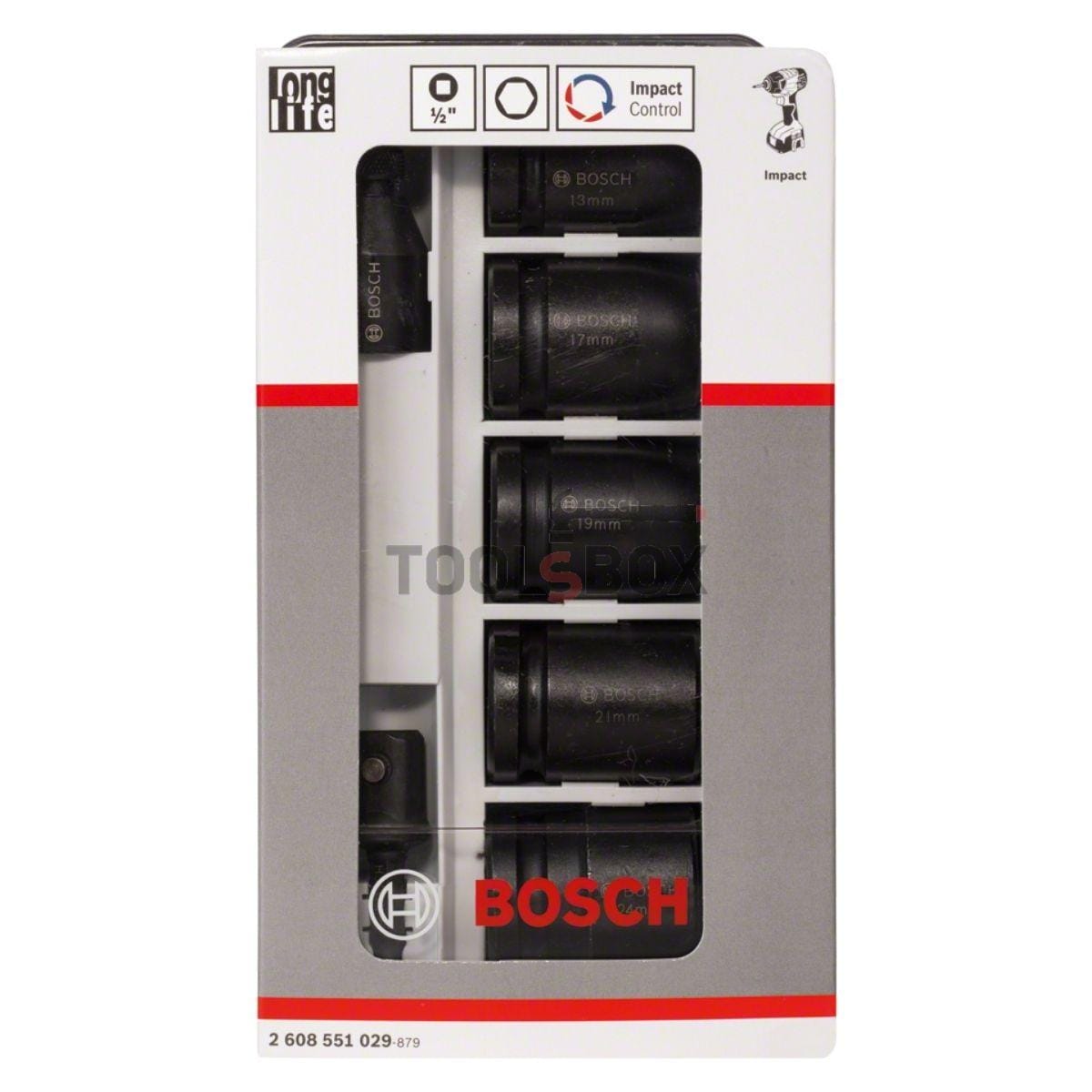 BOSCH 2608551029 Impact Control е комплект от 7 части с ударни вложки изработени от висококачествена стомана с размери от 13 до 24 мм. Всички вложки са с 1/2 задвижване, а в комплекта са включени два адаптера.