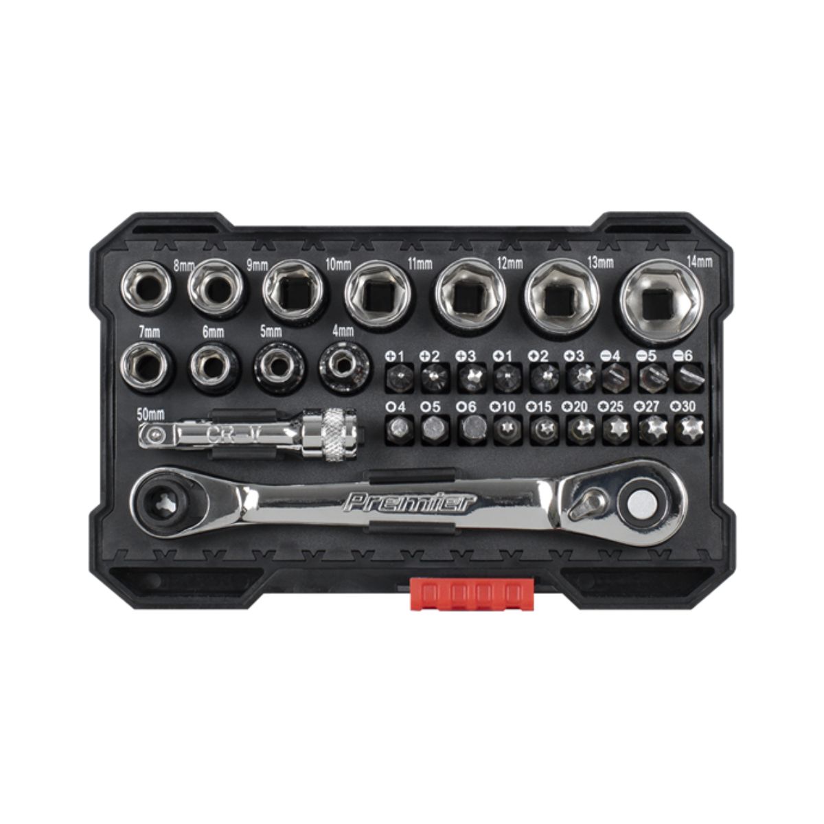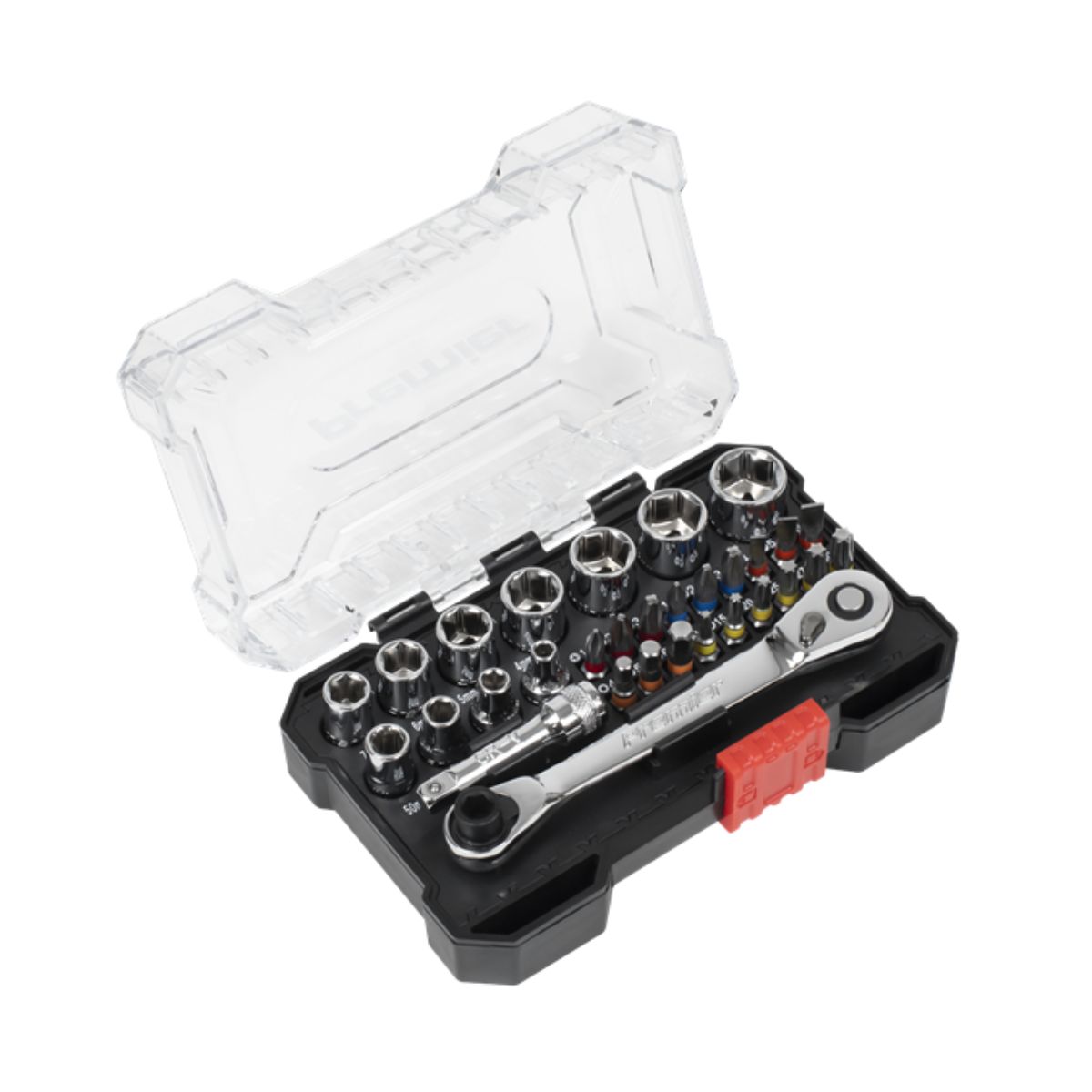 Комплект вложки и накрайници Sealey AK2111 е част от висококачествената гама ръчни инструменти Sealey Premier, предназначени за професионална употреба всеки ден. Изработени от хромованадиева стомана, консумативите са подложени на термично обработване и закаляване, а след това на пълно полиране, което им осигурява изключителна устойчивост на корозията. Удобният захват гарантира удобно и сигурно захващане за инструментите. Комплектът включва 31 броя вложки, битове, удължител, както и тресчотка със 72 зъба. За удобство при съхранение и транспортиране, комплектът е придружен с калъф за съхранение, предлагайки лесно съхранение и транспортиране.