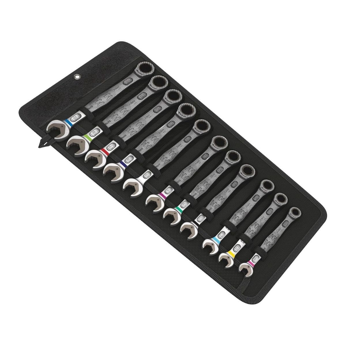 Комплект звездогаечни ключове с тресчотка Wera 05020013001 включва 11 висококачествени ключа, проектирани за максимална ефективност и удобство. Изработени от здрава хром-молибденова стомана с никел-хромово покритие, те са устойчиви на износване и корозия. Основните предимства включват метална пластина в челюстта за задържане на винтове и гайки, което минимизира риска от изплъзване, както и краен ограничител, който позволява прилагането на високи въртящи моменти. Двойната шестостенна геометрия осигурява стабилен контакт, а малкият ъгъл на връщане от 30° спестява време при работа. Тресчотковият механизъм с 80 фини зъба предоставя изключителна гъвкавост в тесни пространства. Комплектът е оборудван със системата „Take it easy“ за бързо и лесно намиране на инструменти благодарение на цветово кодиране според размера. Отличен избор за професионалисти, които ценят прецизността и ефективността.