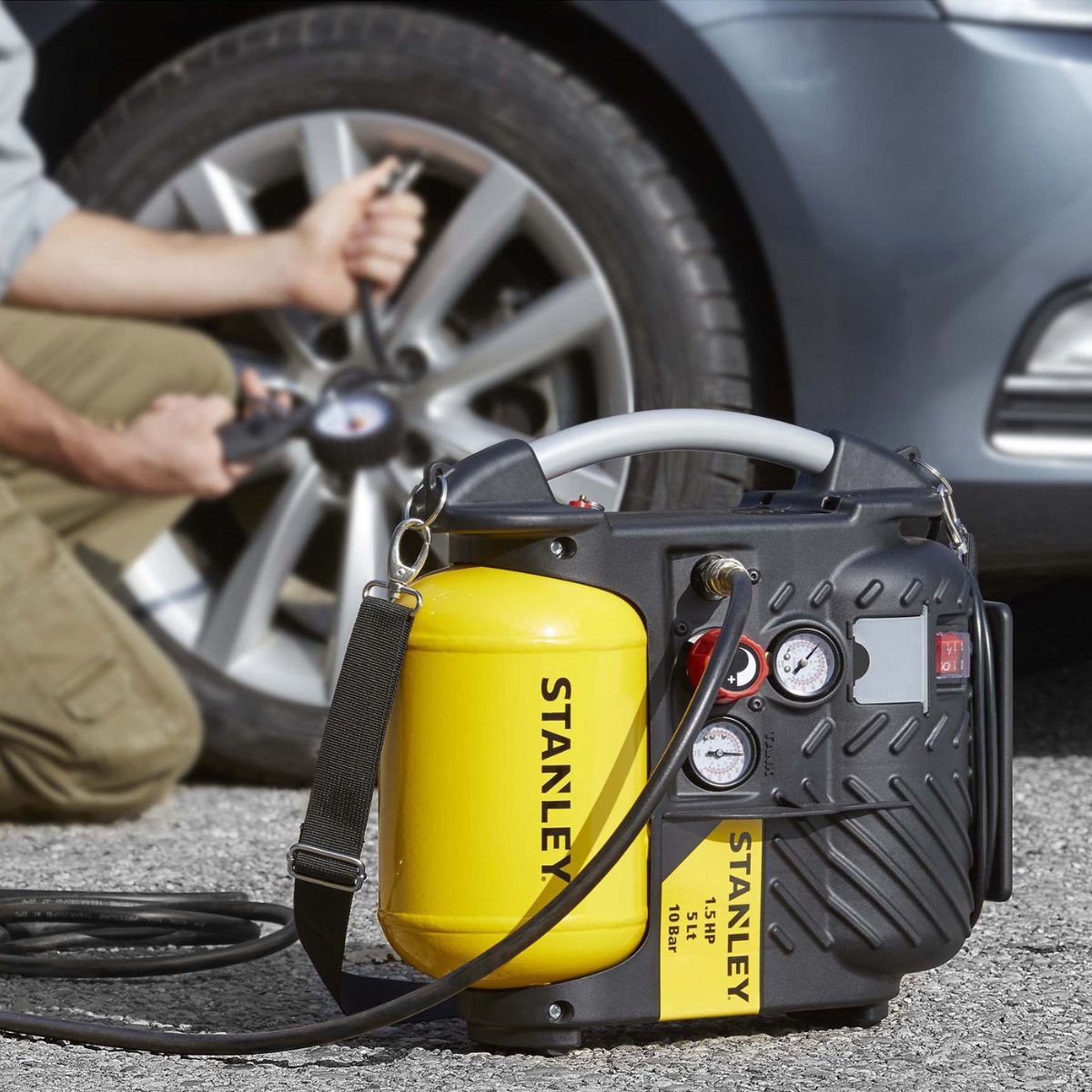 Компресор STANLEY 8215250 е идеалният помощник за вашия дом или работилница. Този компресор се отличава с лесното си управление благодарение на старт/стоп функцията. Вграденото отделение за аксесоари ви позволява да съхранявате необходимите принадлежности на едно място. С презрамката, която е включена, можете лесно да носите компресора до работното си място. Той е компактен, лек и подходящ както за надуване на гуми, така и за други задачи като почистване и осветление. Подходящ е и за приложения, изискващи сгъстен въздух и пневматични инструменти.