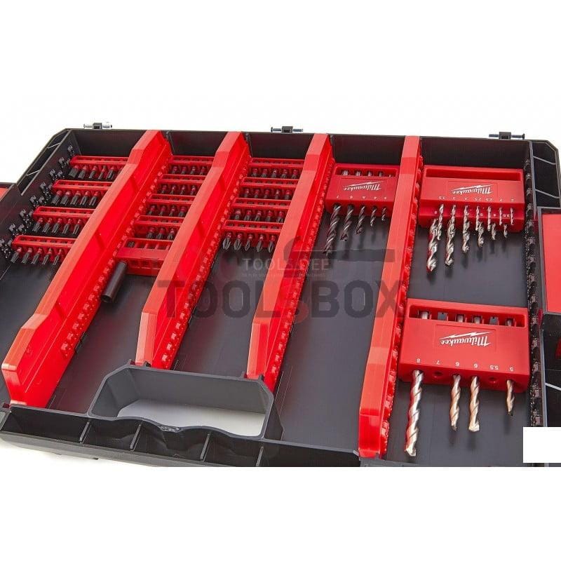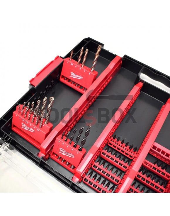 Комплект от аксесоари за пробиване и завиване с най-доброто качество на Milwaukee®. Съвместим с HD куфари за инструменти Milwaukee®. SHOCKWAVE ™ накрайници за приложения с HEAVY DUTY ™. Свредла за метал THUNDERWEB HSS-G DIN 338 за пробиване в много твърди материали. Дълготрайни с точка на разделяне 135 ° за стартиране на прецизното пробиване.