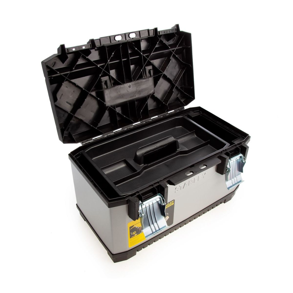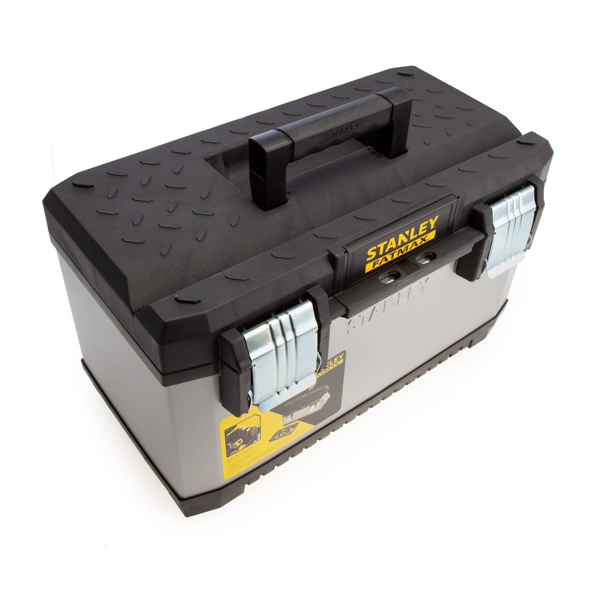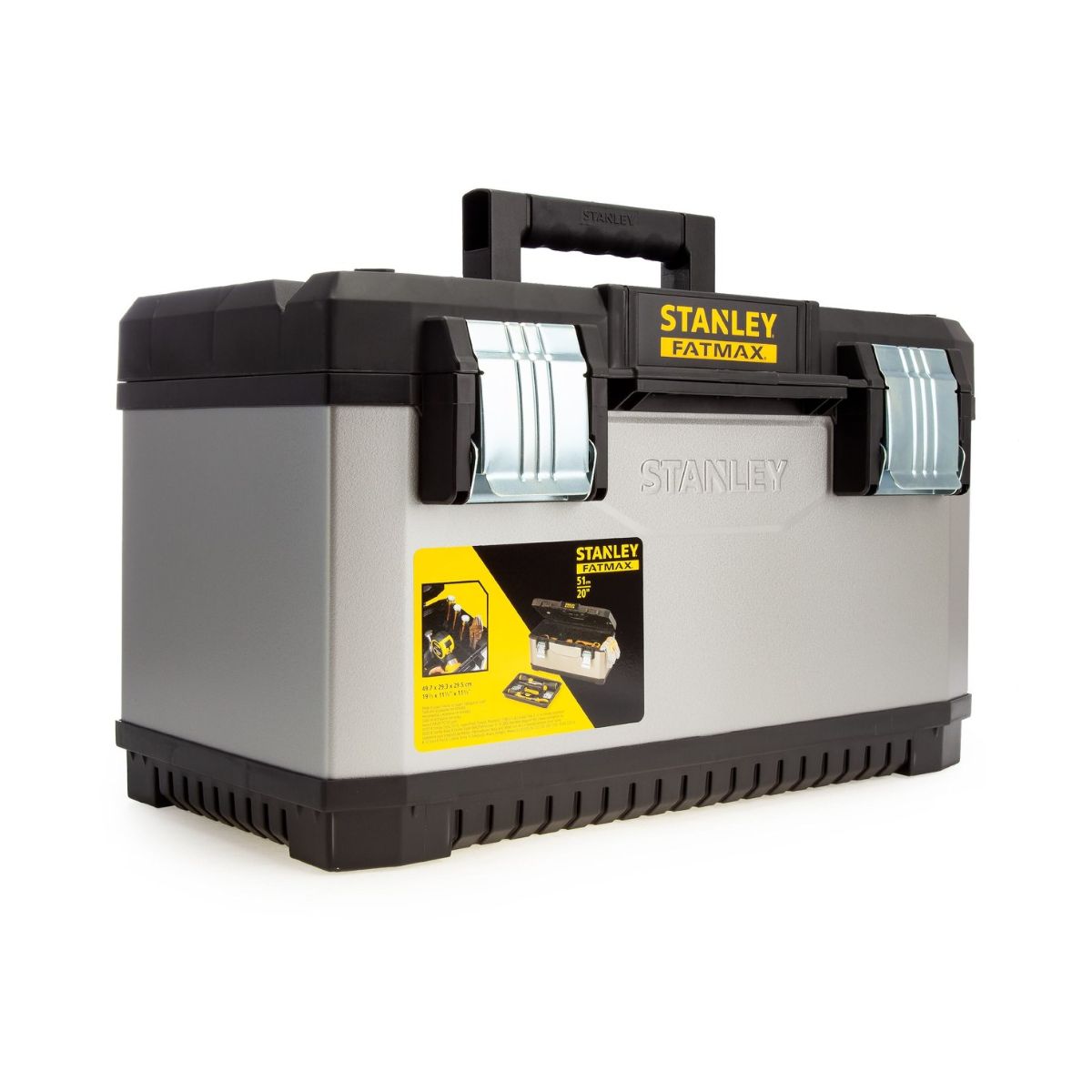 Куфар за инструменти пластмасов STANLEY FatMax е идеалното решение за съхранение и транспортиране на инструментите ви. Този куфар комбинира предимствата на пластмасата със здравината на метала, предоставяйки максимална защита на вашето оборудване. Има ергономична дръжка от би-материал, която улеснява пренасянето на дори изключително тежки товари. Куфарът разполага с иновативен вертикален елемент за съхранение, който подобрява организацията на инструментите ви. Големите метални ключалки, устойчиви на ръжда и с катинар, осигуряват сигурно заключване и предпазват инструментите от нежелани достъпи. Преносимата табла на куфара е предназначена за персонализиране на пространството на инструментите и малки части, като същевременно позволява голямо съхранение на инструменти вътре в кутията. Този куфар е подходящ за работа с тръби и дървен материал, а високата кутия осигурява допълнителна височина за място за съхранение.
