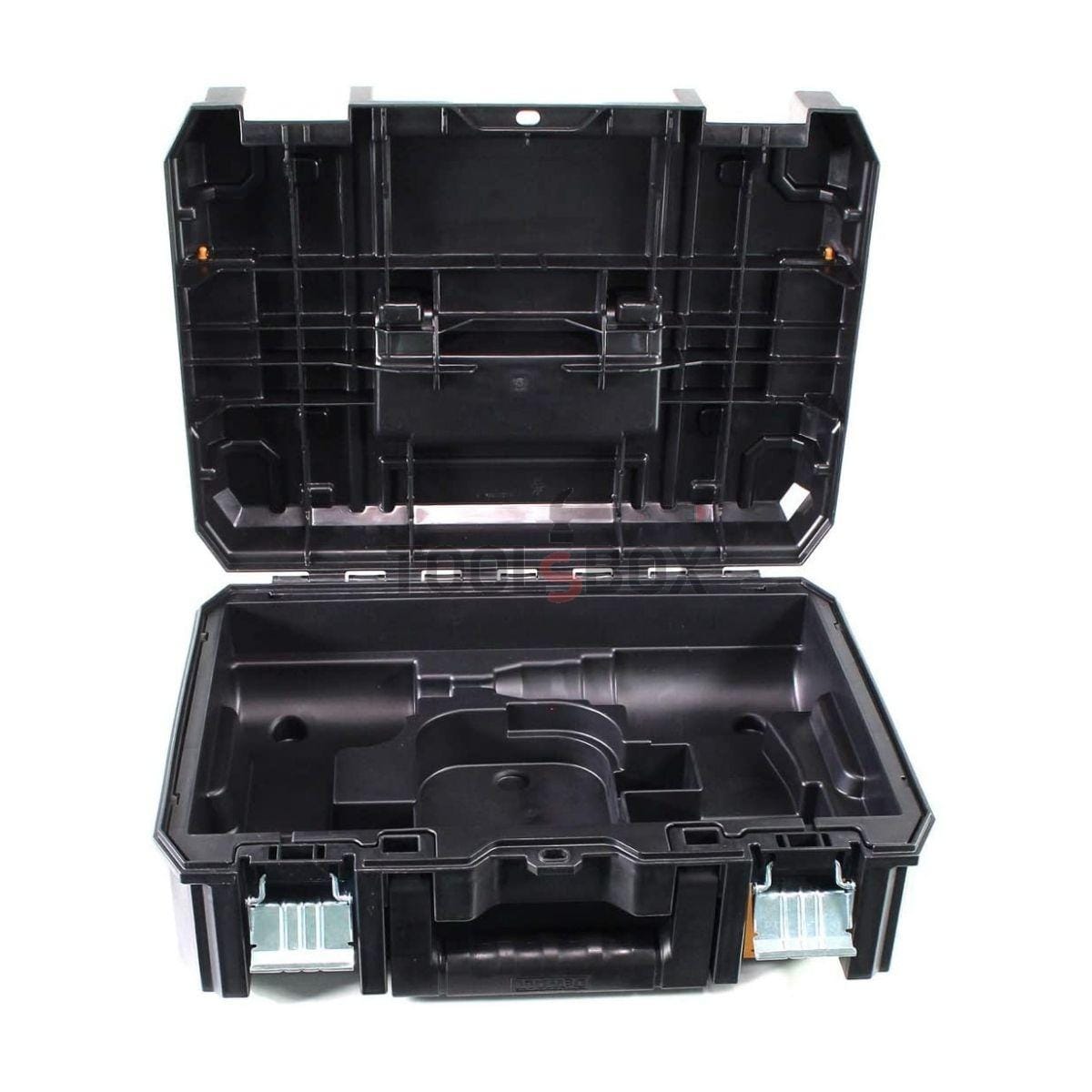 Куфар за машини   DWST1-70703-1  на DeWALT е изработен от висококачествен удароустойчив полипропилен, има здрави метални ключалки за истински майстори. Изваждаща се табла за аксесоари.  Идеална за съхранение на тежки инструменти и машини. Предоставя разнообразни възможности за съхранение и транспортиране. Той е идеален за акумулаторна ударна бормашина DeWalt или ударен гайковерт, може да побере, също така, необходимите батерии и зарядно устройство. Побират се 2 машини в куфара с 2 батерии и зарядно.