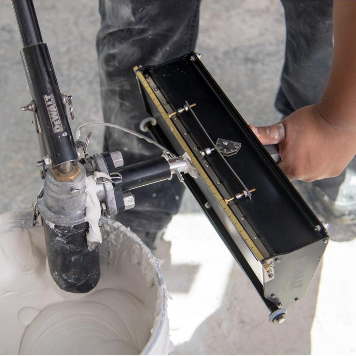 Висок клас кутия за шпакловане DeWALT е изградена от анодизиран алуминиeв корпус и остриета от неръждаема стомана за голяма устойчивост и здравина. Гъвкавият държач на месинговите остриета позволява прецизно нанасяне на точното количество шпакловка, гарантирайки удобство и комфорт при използване. Самият капак е с пружина, което осигурява лесното отваряне и затвяряне за допълнително удобство при почистване. Кутията нанася равномерен, последователен слой шпакловка върху фуги по стени и тавани, правейки всички ръбове и ъгли перфектни.