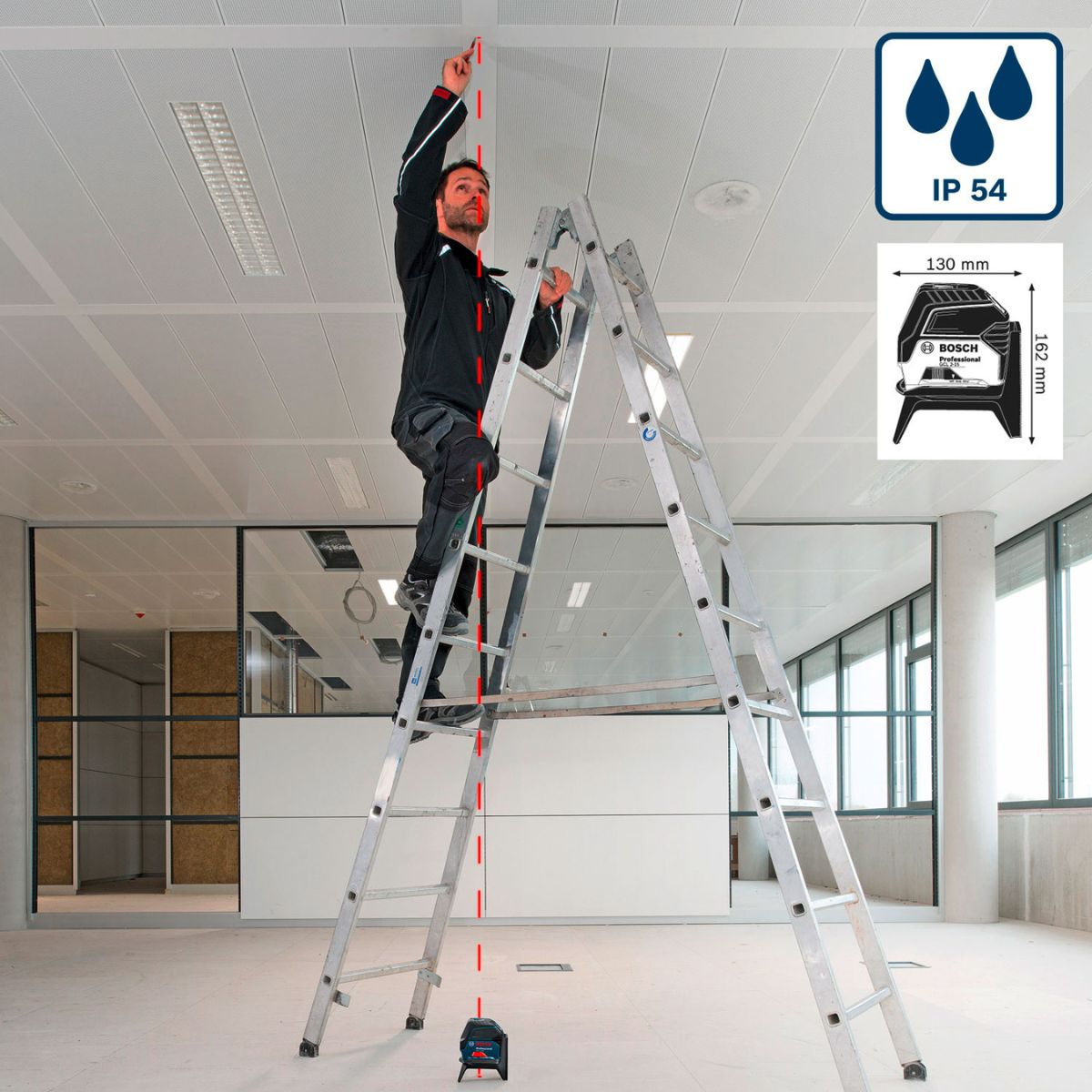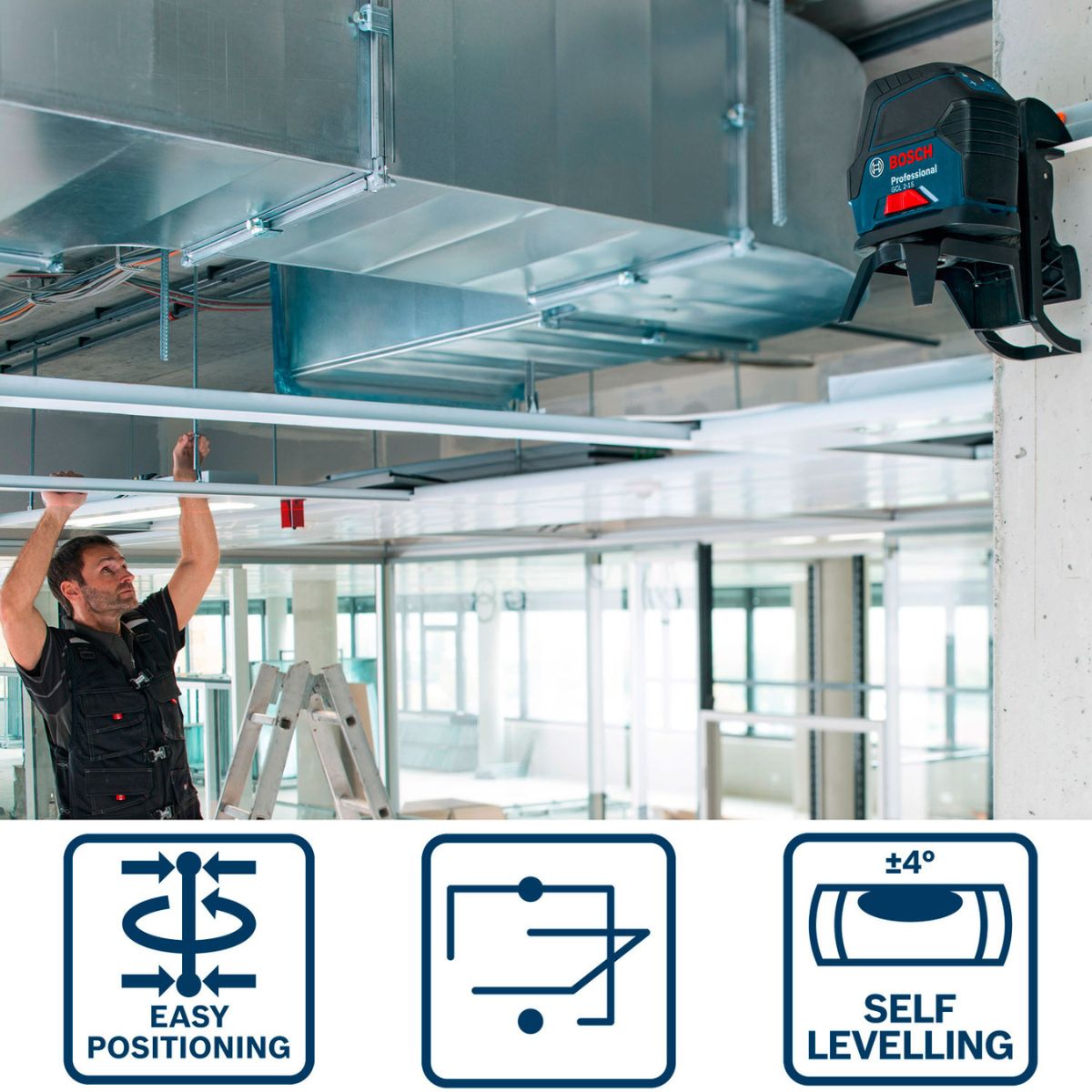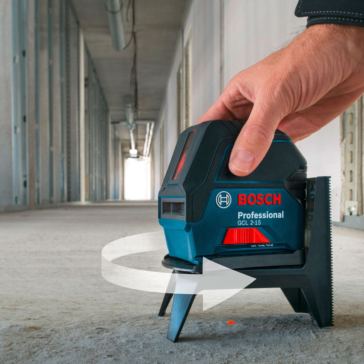 Лазер линеен-точков Bosch GCL 2-15 Professional е компактен и универсален комбиниран лазер, предназначен за всички задачи по нивелиране на къси разстояния. Инструментът предлага лесна и интуитивна работа с една ръка, благодарение на опростения си интерфейс и практичния дизайн. Защитата срещу махаловидно движение осигурява безопасно транспортиране, като предотвратява вътрешни повреди при преместване. Уредът дава възможност за избор между линеен и точков режим, което го прави подходящ за широк кръг приложения. С възможност за хоризонтално и вертикално самонивелиране до ±4°, той гарантира висока точност при измерване и маркиране. Осигурява ясни хоризонтални и вертикални лазерни линии, както и две центрирани отвесни точки с отлична видимост, дори при слабо осветление. Лазерните линии могат да се позиционират около отвесните точки, което осигурява допълнителна гъвкавост при различни задачи. За още по-прецизно и удобно позициониране, Bosch GCL 2-15 се комбинира с въртящия се мултифункционален държач RM 1 Professional, който предлага множество възможности за закрепване и насочване. Това прави инструмента идеален избор за монтажни, довършителни и ремонтни дейности в интериора.