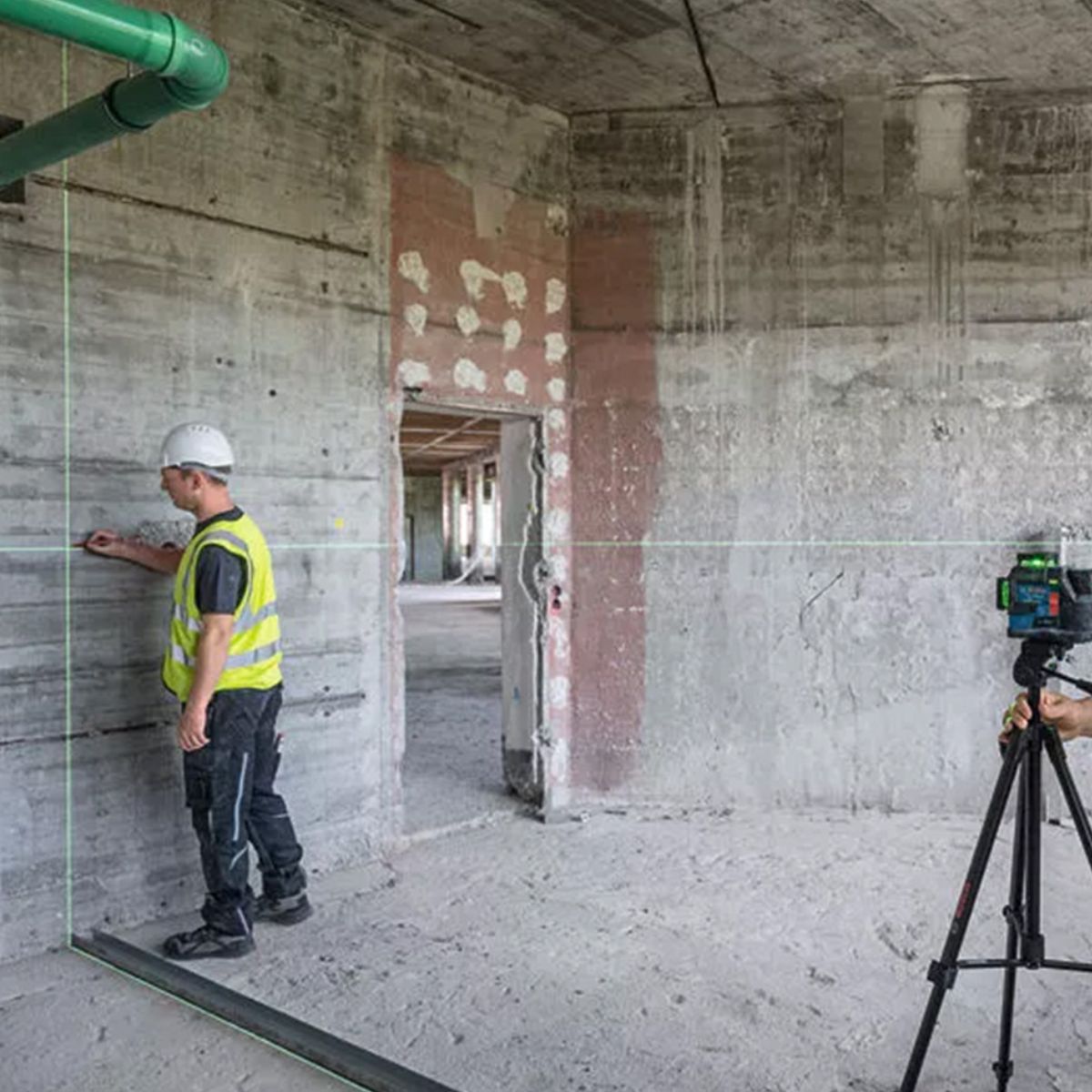 Лазерен нивелир BOSCH GLL12V-100-33 CG е професионален инструмент, създаден за максимална прецизност и ефективност при подравняване във всякакви условия. Работи с три 360-градусови лазерни линии, които покриват хоризонтални и вертикални равнини, улеснявайки сложни задачи по нивелиране и оформление. Благодарение на интуитивния интерфейс и възможността за управление чрез мобилното приложение Levelling Remote, се постига по-висока точност и по-бързо изпълнение, без необходимост от физически контакт с уреда. Инструментът разполага с здрава и надеждна конструкция, включваща гумиран корпус и степен на защита IP65, което го прави устойчив на прах, вода и удари – перфектен избор за тежки работни среди. Гъвкавата енергийна система позволява използване както с 12V литиево-йонна акумулаторна батерия, така и с алкални AA батерии, осигурявайки непрекъсната работа и минимизиране на времето за престой, дори когато едната батерия е изтощена. Този модел комбинира здравина, мобилност и прецизност, което го прави идеален за професионални строителни и монтажни дейности, изискващи точност и надеждност при подравняване.