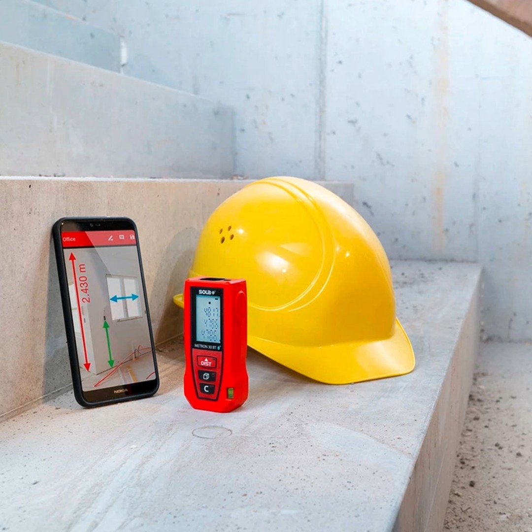 Лазерна ролетка Sola Metron 30 BT е компактен и надежден уред, създаден за бързи и прецизни измервания в диапазон от 0.05 до 30 метра. Точността от ±2.0 мм гарантира професионални резултати при измерване на дължини, площи и обеми, като уредът разполага с общо шест полезни измервателни функции. Благодарение на интегрирания Bluetooth интерфейс, Metron 30 BT може лесно да се свърже със смартфон чрез приложението SOLA Measures, което позволява удобно съхранение, споделяне и управление на данните. Уредът е проектиран с акцент върху удобството – лекият корпус, ергономичната форма и практичният захват осигуряват комфортна работа. Вградена нивелирна либела подпомага прецизното позициониране при измервания на ъгли и наклони. Яркият тристепенен дисплей с подсветка осигурява отлична видимост както в закрити, така и в по-слабо осветени пространства. Лазерната ролетка работи с две батерии AAA, осигуряващи до 5000 измервания с един комплект. Степента на защита IP54 гарантира устойчивост на прах и водни пръски, което прави уреда подходящ както за вътрешна работа, така и за външни условия. Функциите за автоматично изключване на лазера след 45 секунди и на уреда след 180 секунди допринасят за удължен живот на батериите и икономична работа.